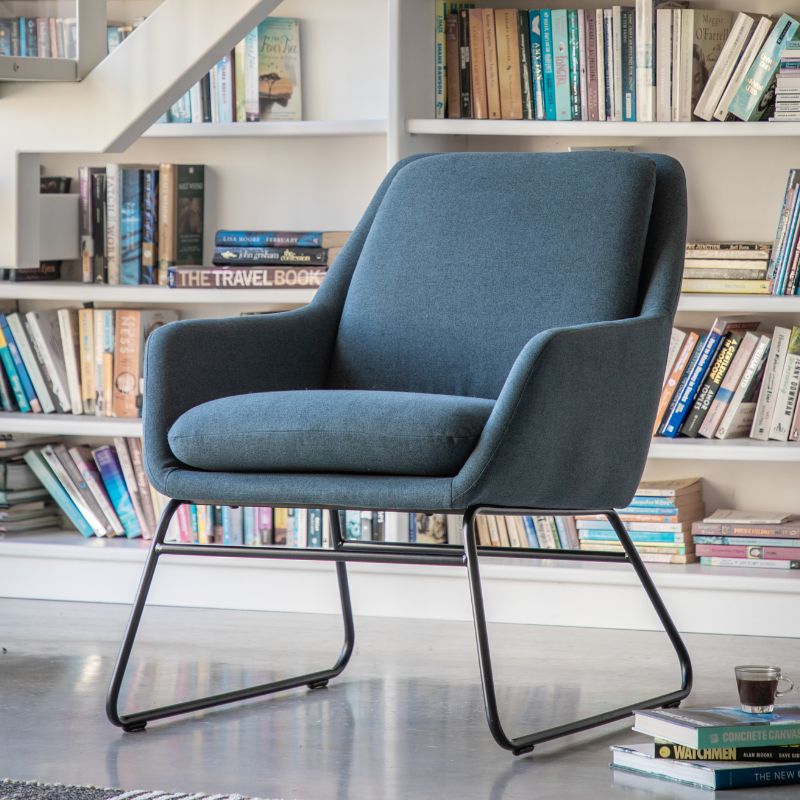 Photo featuring: Grayson Fabric Armchair – Midnight Blue
