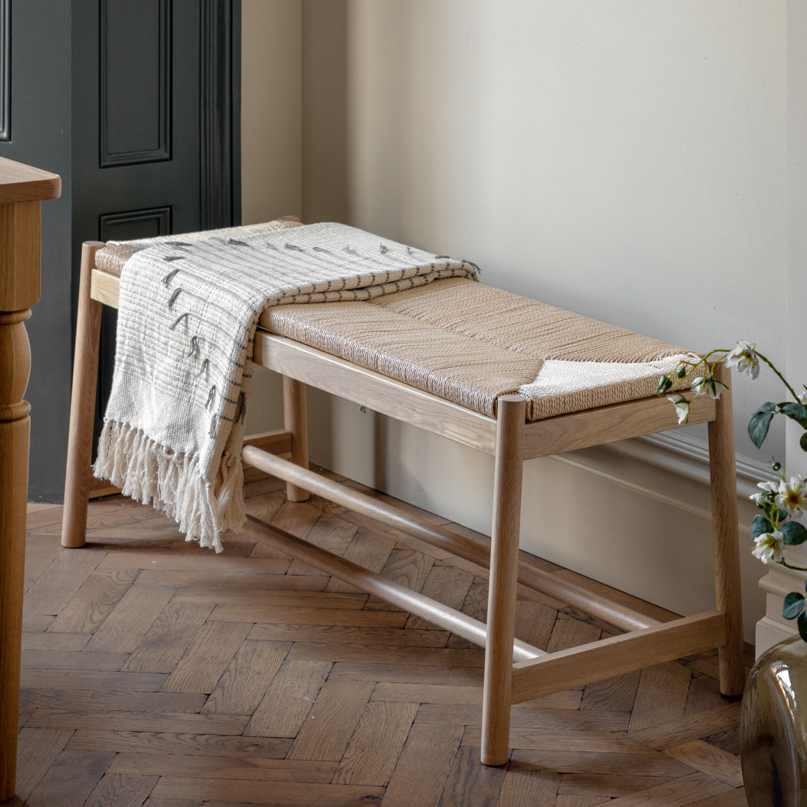 Key to a rustic style is adding a bench to the whole scheme. In the hallway, what could be better?