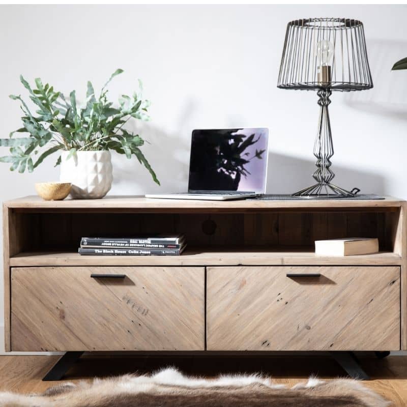 Industrial style really is a style that continues to be popular, combine that with full of character reclaimed wood and you have some really gorgeous furniture happening. With some open and some closed storage, the Standford industrial TV stand looks stunning in a contemporary living room. To complete the look you can choose other industrial furniture items from the same range to really embrace this stylish interior theme. If you prefer a more glamorous industrial look in your home, the Tavistock TV stand is perfect for you. The black industrial legs have been swapped for a more unusual gold / bronze finish and with two shelves and a cupboard, you will have plenty of media storage space.