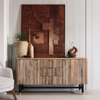 The essence of reclaimed wood furniture lies in its distinctiveness—every piece is different, every piece tells a different story. This means when you choose a reclaimed wood sideboard from our collection, you’re not just bringing home a piece of furniture, but a one-of-a-kind creation that adds a rustic charm to your interior.