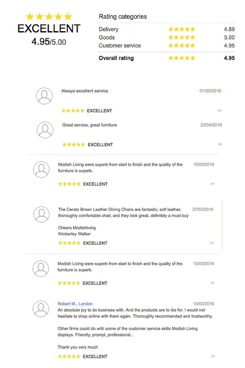 To view more customer feedback, click through to TrustedShops