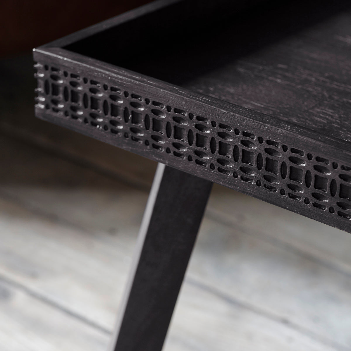 Each side of the table boasts intricate fretwork, embodying the spirit of world travel with a touch of ethnic design motifs. This versatile coffee table is more than just a functional piece; it’s a conversation starter. Its timeless design easily complements contemporary or traditional interiors, making it the center piece of any eclectic living space. Whether you’re sipping a cup of coffee or showcasing your favourite decor, the Bohème Retreat Coffee Table promises elegance and style in abundance.