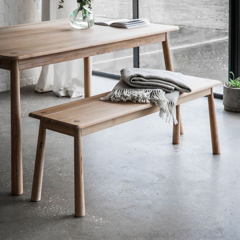 This beautiful dining room bench is the perfect addition to the Branford Oak Dining Table or for any dining space wanting to channel a minimalist Nordic interior style. Crafted from solid oak, a table with bench combination is always a family favourite and this oak dining bench with its tapered legs, curved features and pale finish will add a touch of style and effortless elegance. Perfect for seating two to three guests, this dining bench seat is ideal if you are short of space as it can be tucked neatly under the oak table and out of the way.