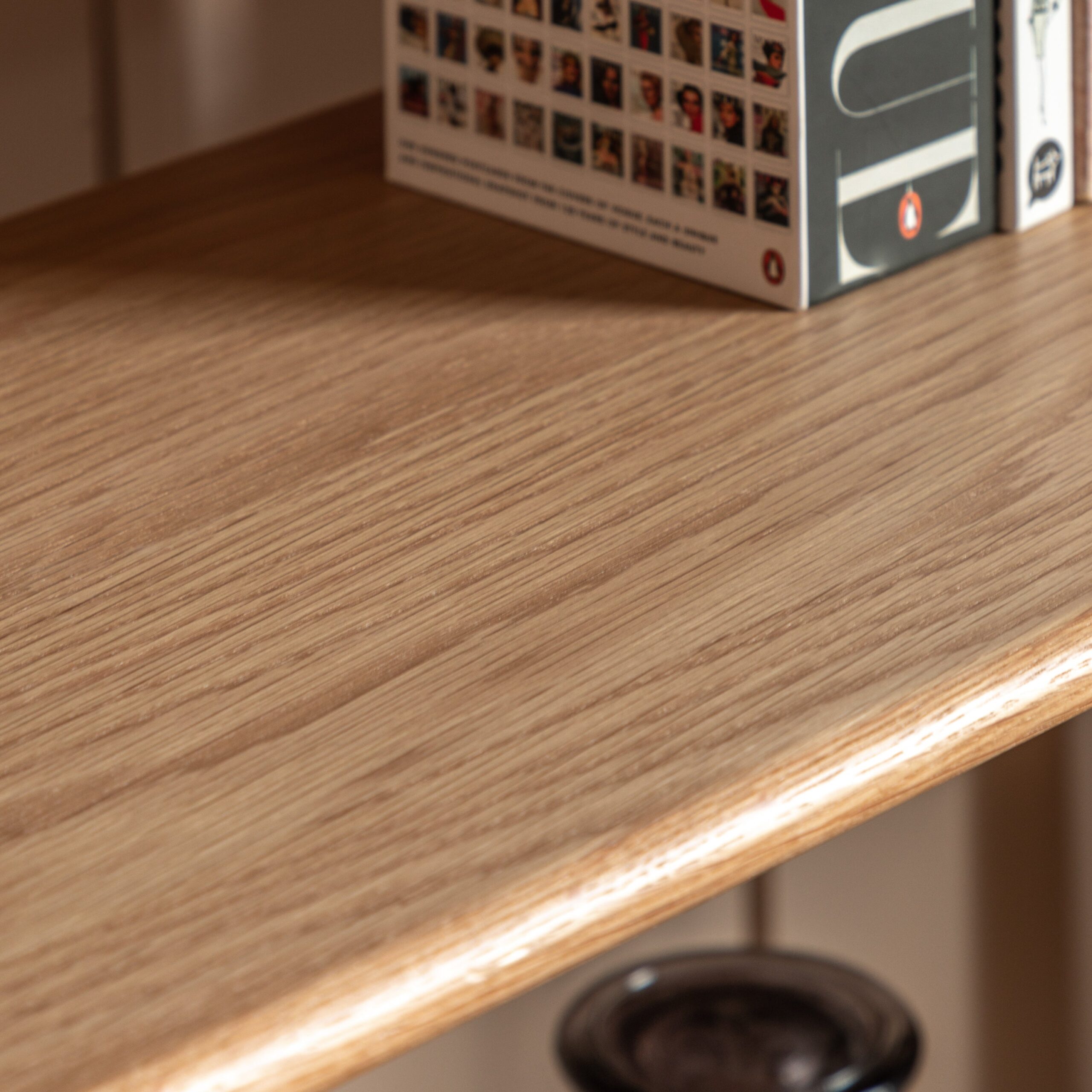 With the essence of Nordic style this display unit is the perfect place for books, ornaments and treasured items. The tall 4 shelf unit features oak veneered shelves on a sturdy solid oak frame, with stylish tapered lags this unit is stand out stylish.