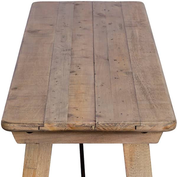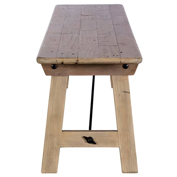 Handcrafted solid wood dining bench made using 100% recycled wood. The Chelwood Nordic Dining Bench has a light finish, and the sleek slender design also features black steel rods which act as support, as well as a design feature. This wooden dining bench forms part of a set with a matching dining table. Every bench will come with natural markings and nail holes, all of which boast the evidence of its previous life. The bench is finished and protected with a matt lacquer, giving you a modern contemporary finish.