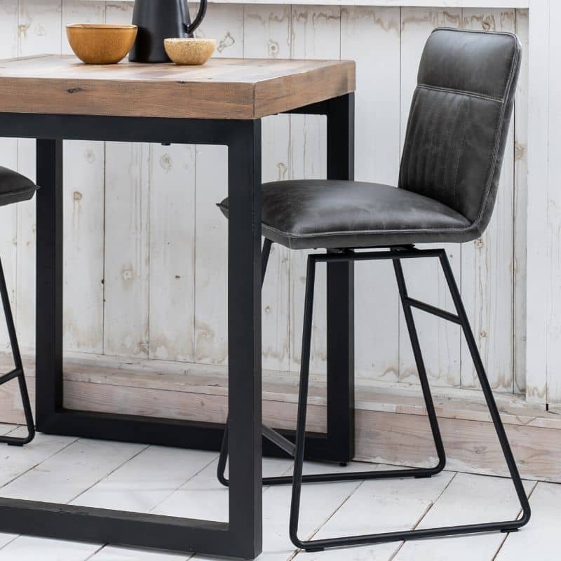 Contemporary and stylish, these Clea Faux Leather Counter Bar Stools are perfect around a countertop kitchen island or with a rustic reclaimed wood bar table. Vegan leather counter top bar stools come in either dark grey or tan finish and sit on an elegantly curved steel frame. The soft padded seating will allow for hours of comfort. The easy-to-wipe and clean bar stools form part of our popular Cleo seating range.