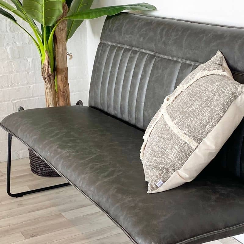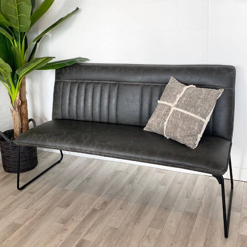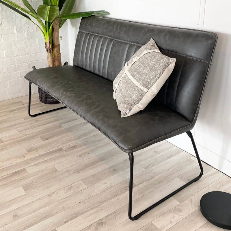 This large 3 seater dining bench comes in a medium grey or tan finish. The Cleo Grey Faux Leather Dining Bench features a stitched back and sits elegantly on a dark steel framed leg. With a light padding on both the back and the seat, this dining bench is designed with comfort in mind. The vegan leather gives you an easy to clean bench, using a simple damp cloth to wipe up spillages. Both the tan and the grey dining bench come with matching dining chairs.