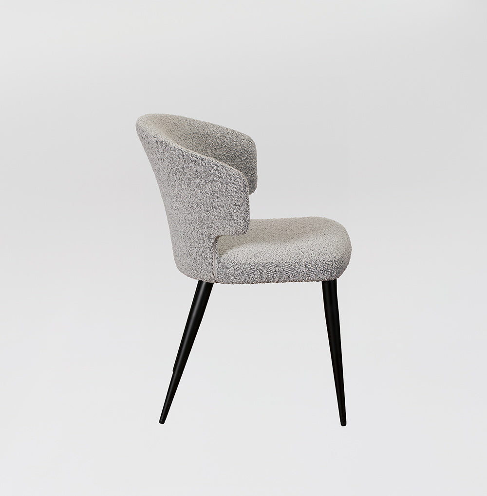 Introducing the Cosmo Comfort Chair Collection – where contemporary style meets everyday comfort. These chairs are fashioned with a luxurious textured fabric that offers a tactile experience as pleasing as its visual appeal. The curved backrest and plush seating cradle you in comfort, perfect for long conversations around the dining table or a cozy reading nook. Supported by sleek black legs that provide a modern contrast, these chairs are crafted to enhance any room with their elegant simplicity and welcoming embrace. Ideal for those who appreciate a blend of modern design and supreme comfort, the Cosmo Comfort Collection invites you to sit back, relax, and enjoy the finer things in life.
