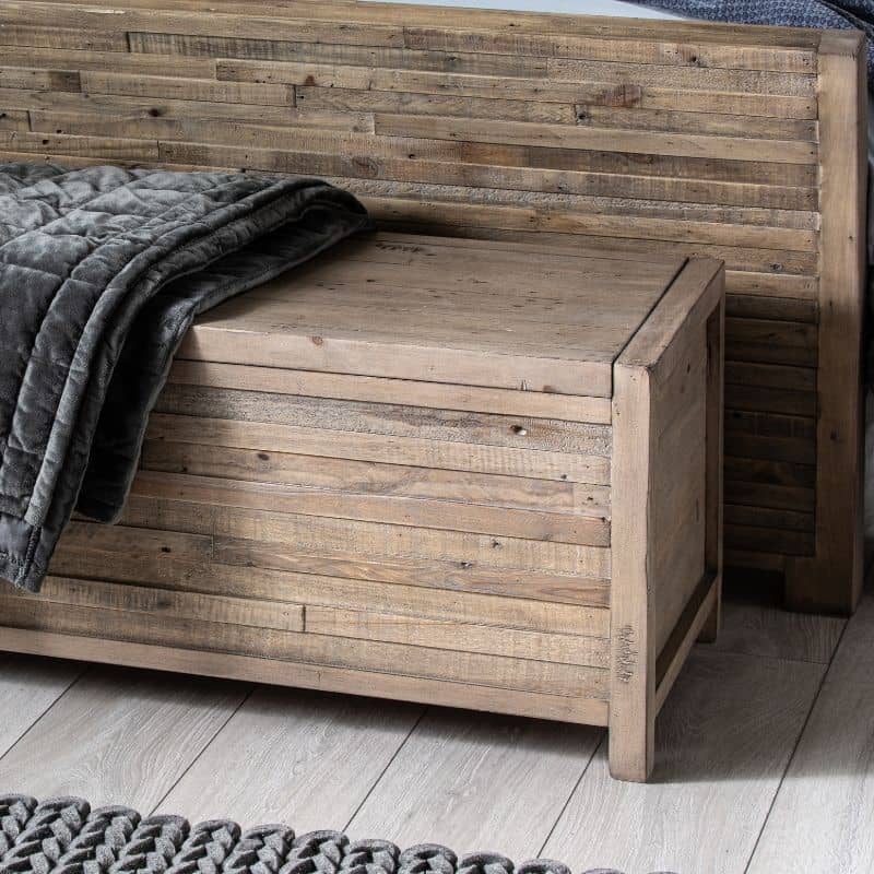 The perfect storage chest, the Dulwich Reclaimed Wood Blanket Box which is also ideal as a children’s toy box. Made using 100% FSC certified reclaimed wood, this solid wooden blanket box is a beautiful piece of furniture to add to any room. The solid wooden chest features character and charm from its previous use, making every trunk unique.