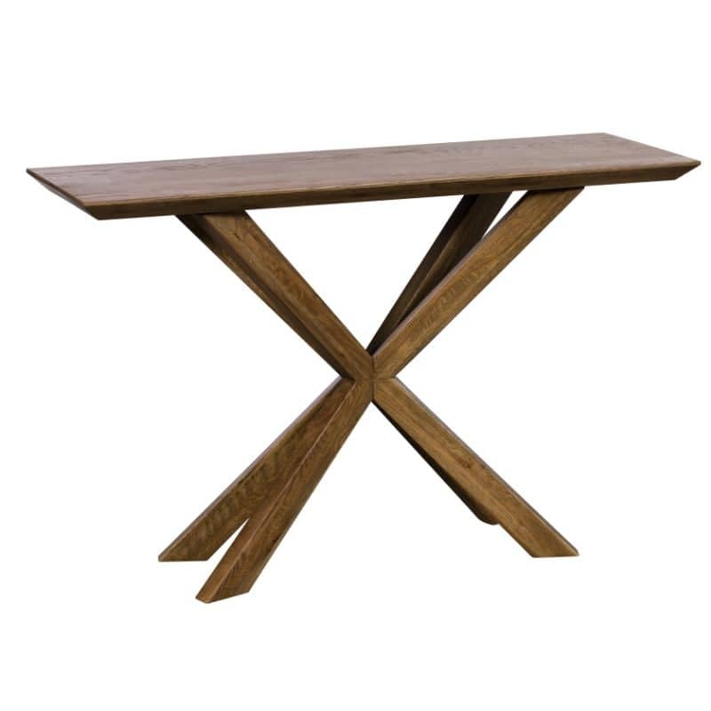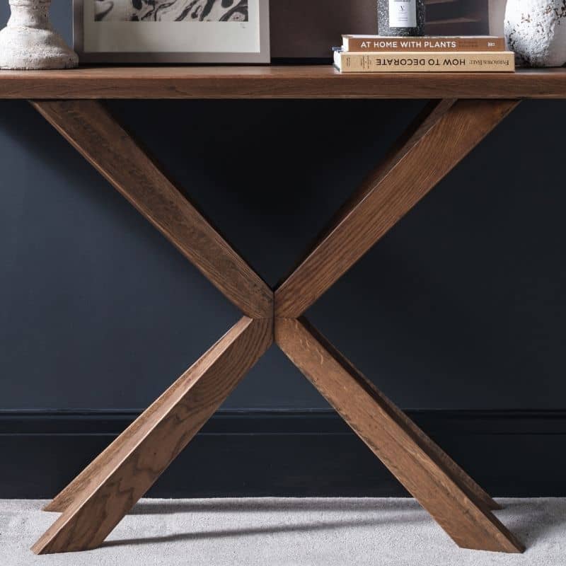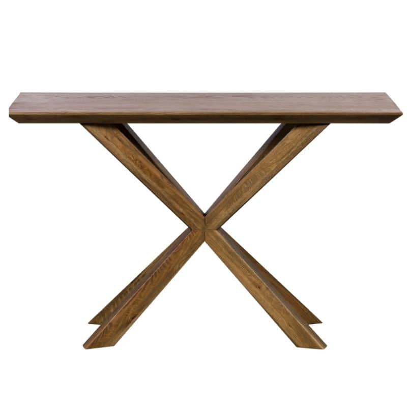 With its eye-catching star-shaped leg this rustic console table is unique as well as practical. Crafted in sustainably sourced oak, this modern console table is the perfect accent piece to elevate the look of a hallway, living room or dining room. A warm mid-tone finish and decorative bevelled edge give this rustic console table a timeless feel that will fit in both classic and contemporary homes. Discover more from the Eastwood Rustic Oak collection of rustic furniture, including a rustic dining table and solid large sideboard and bring the wonderful warmth of wood into your home. Please note, wood is a natural material with a unique and individual tone. As a result, the colour of the wood can vary slightly from piece to piece.