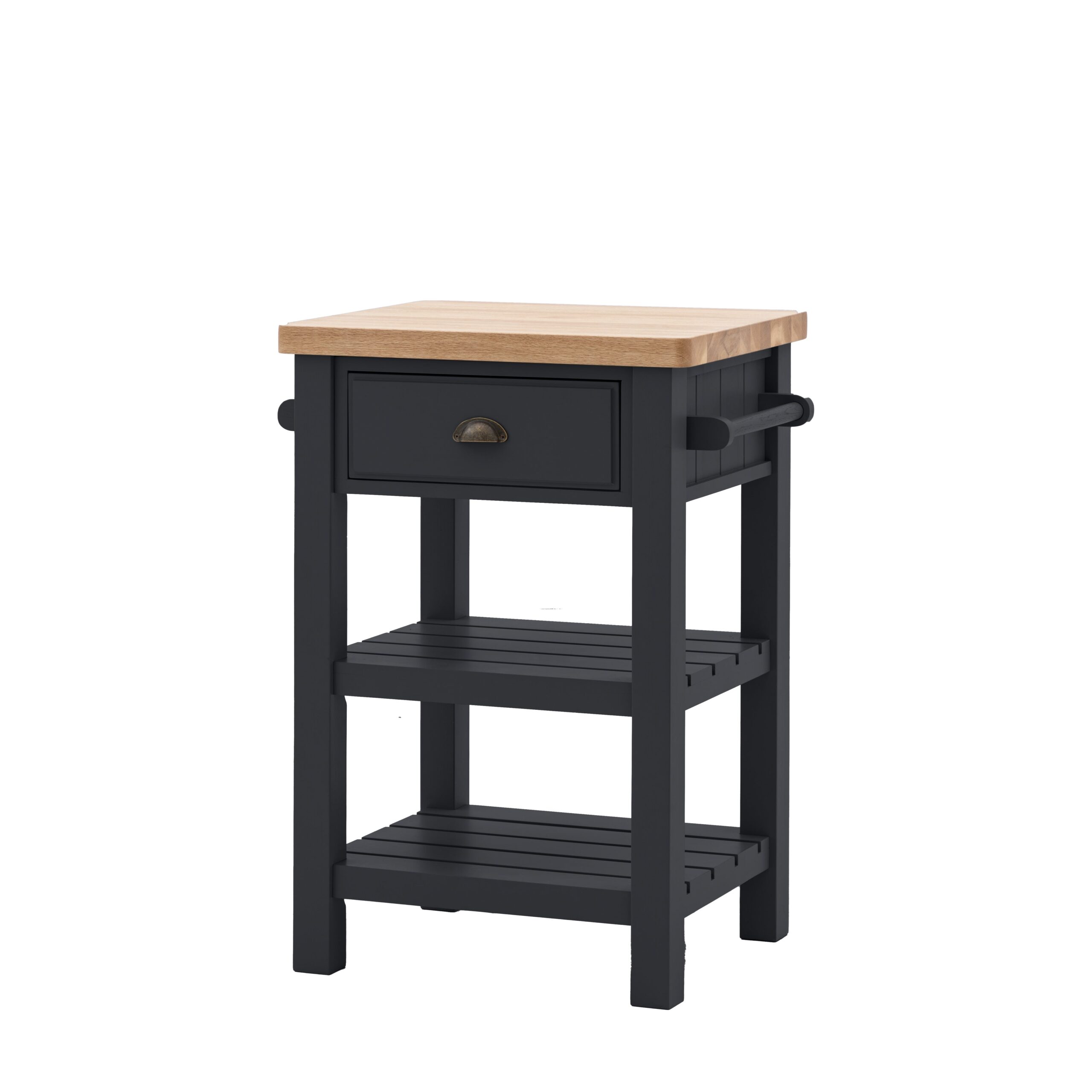 Introducing the Elton Butchers Block: the perfect blend of functionality and elegance for your kitchen. Crafted with a robust solid oak top designed for everyday use, this block boasts two spacious shelves, a convenient hanging rail, and a drawer for additional storage. The hand-painted base paired with sleek metal drawer handles gives a contemporary twist to classic design, making the Elton a stylish yet practical kitchen addition. Available in 4 colours.
