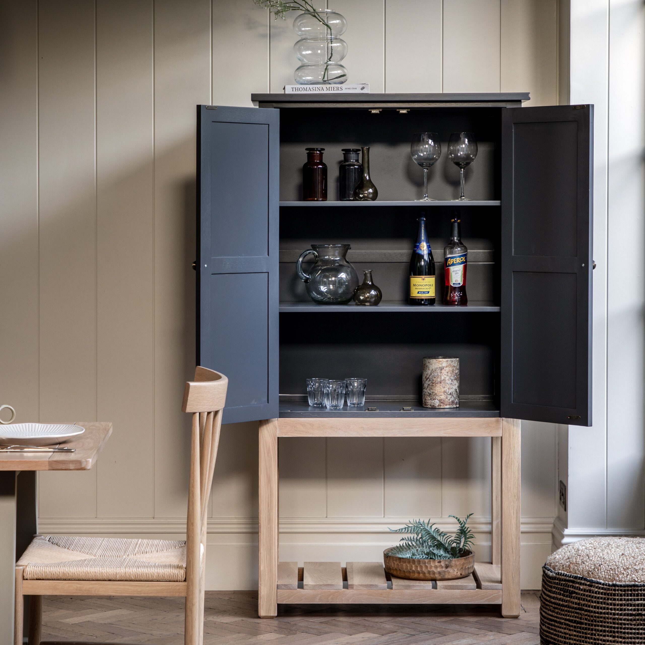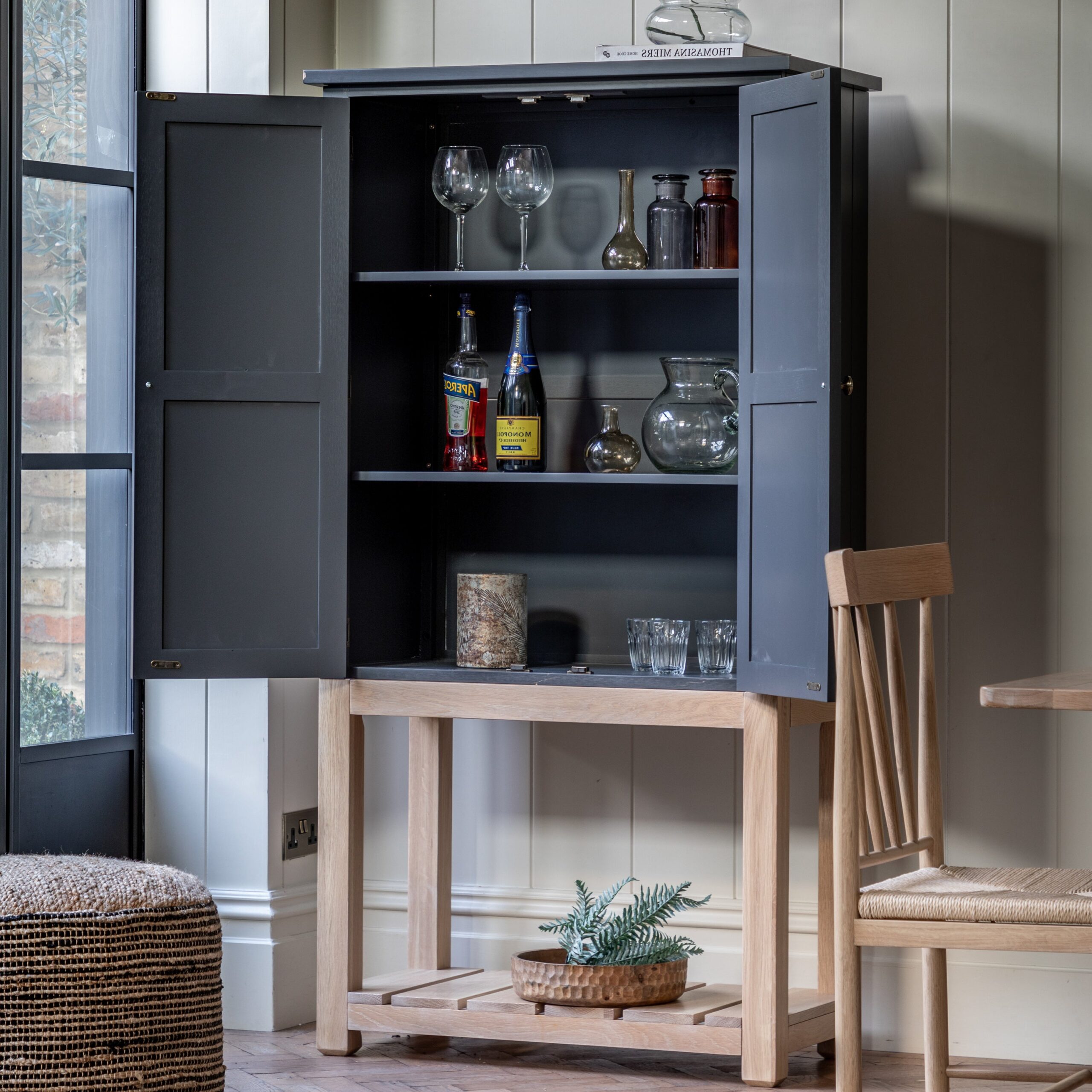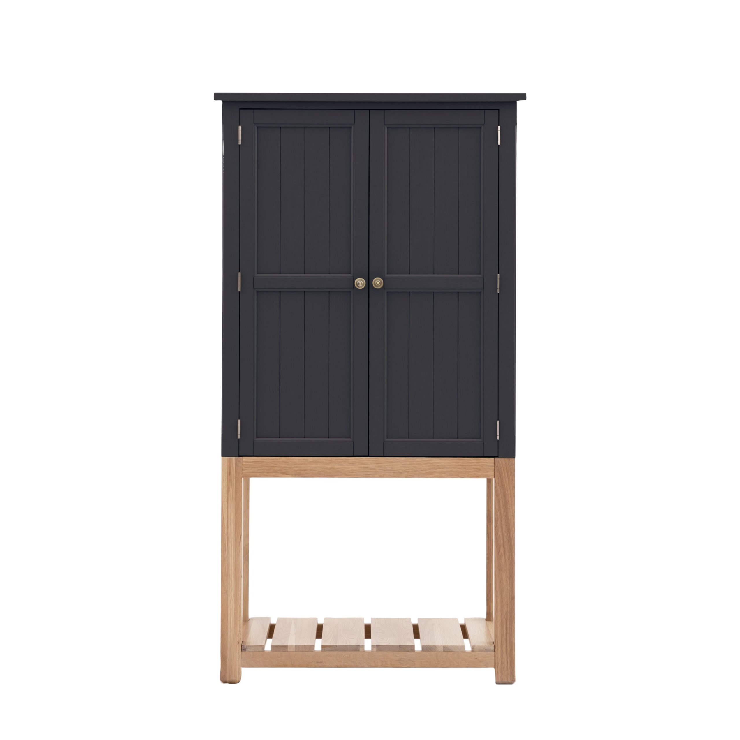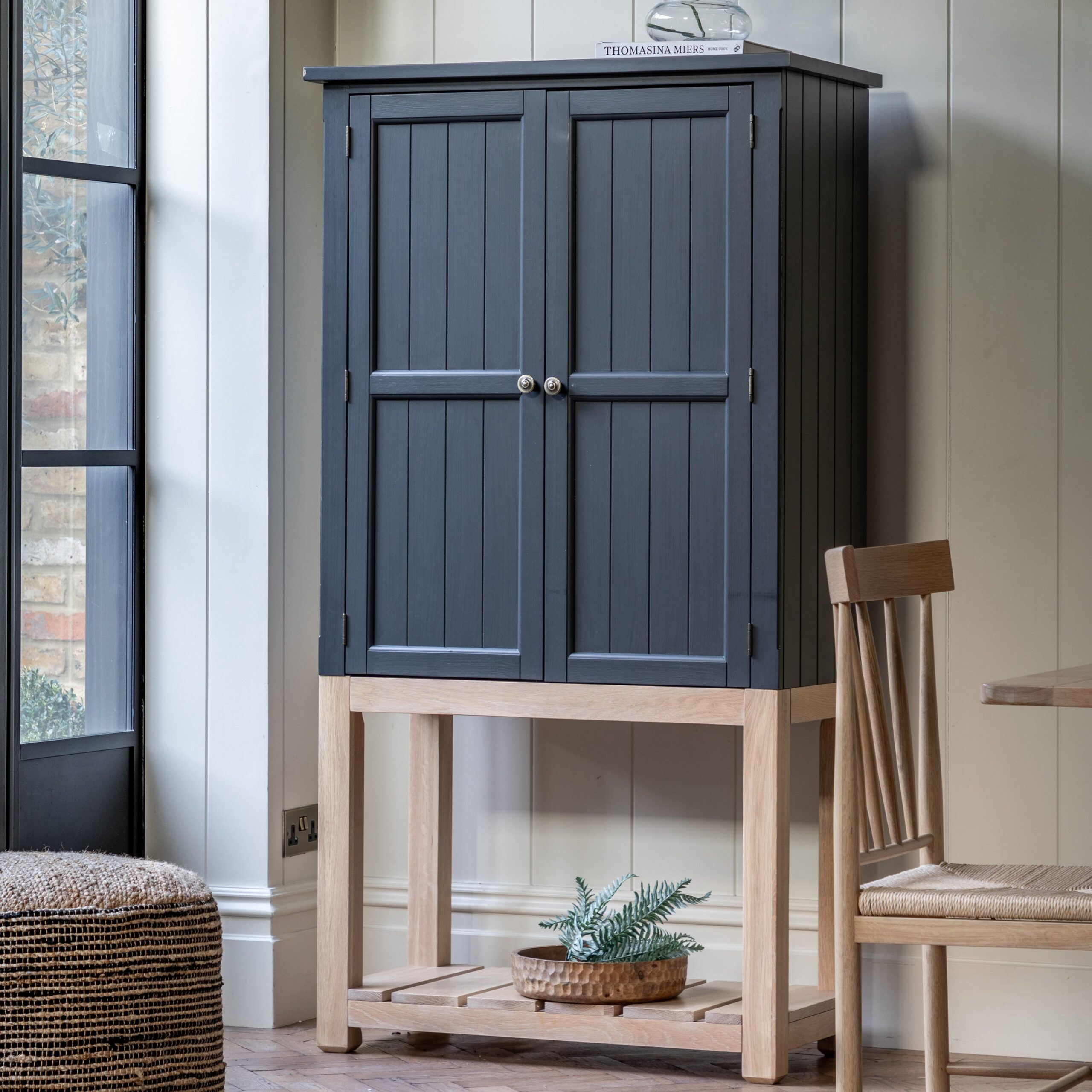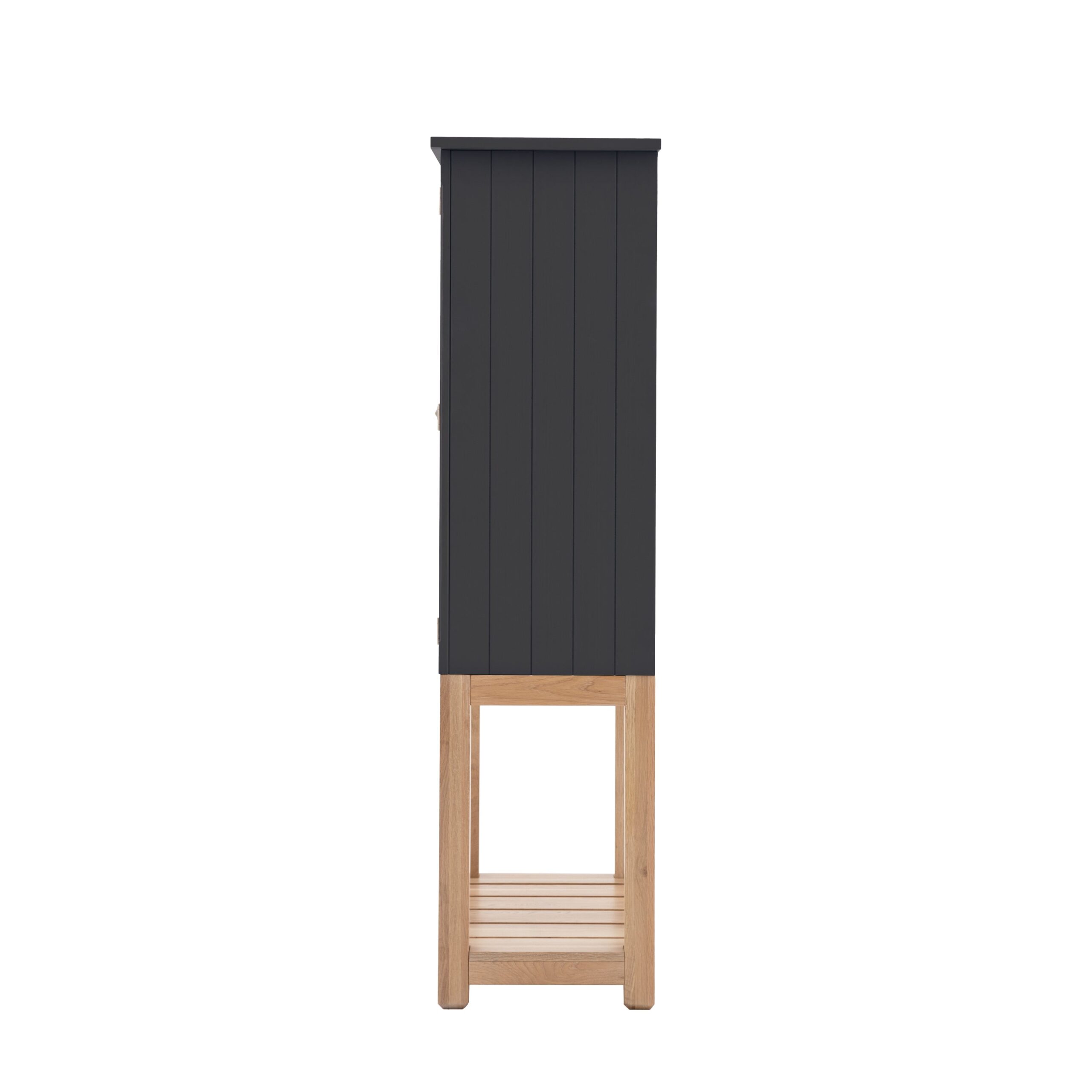 Introducing a beautiful modern update on a classic kitchen cabinet – the Elton Kitchen Larder Cupboard. Designed with functionality and style in mind, this kitchen larder unit is the perfect storage solution for any kitchen or dining space. Sitting on a tall solid oak base that provides a sturdy foundation, this wooden storage unit features a spacious cupboard offering plenty of room to store your pantry staples, cookware and crockery, while the lower shelf is ideal for your larger appliances and pots and pans.
