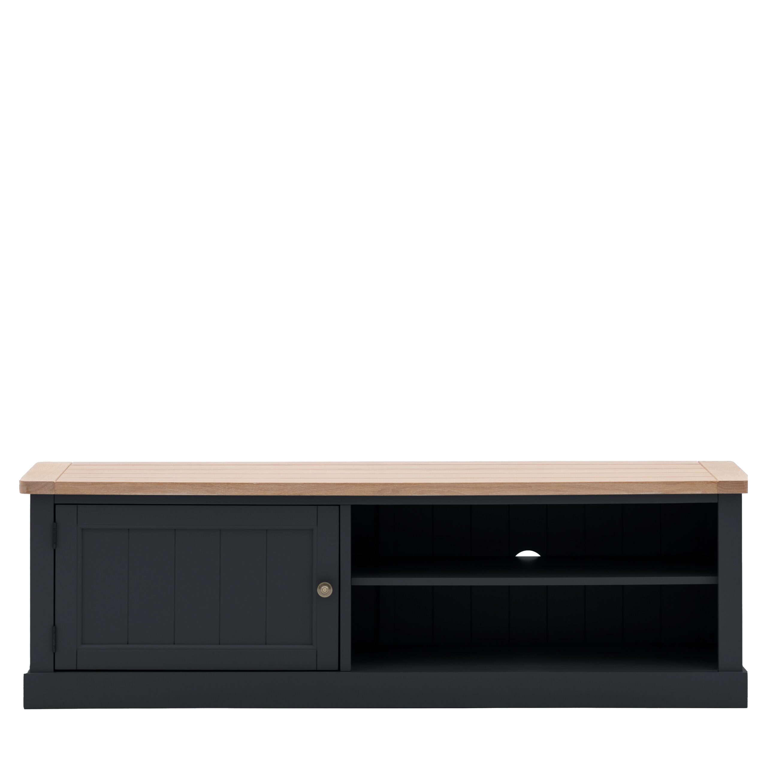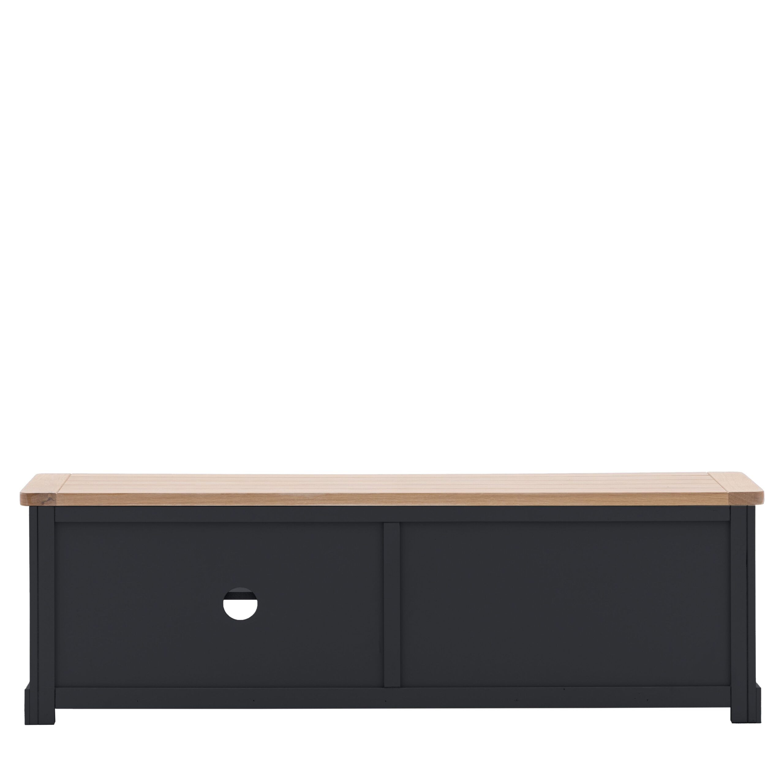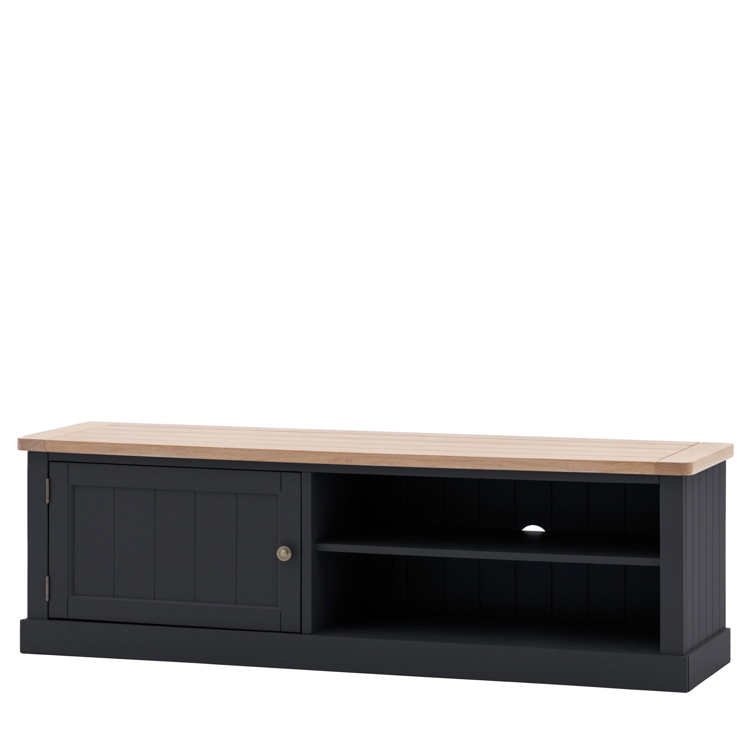 Experience a delightful blend of the classic and contemporary with this exquisite media unit. Crafted with impeccable attention to detail, the unit showcases a grooved and planked oak top that evokes a sense of timeless elegance. This rustic charm is beautifully juxtaposed against the unit’s hand-painted body, resulting in a harmonious interplay of textures and colours.
