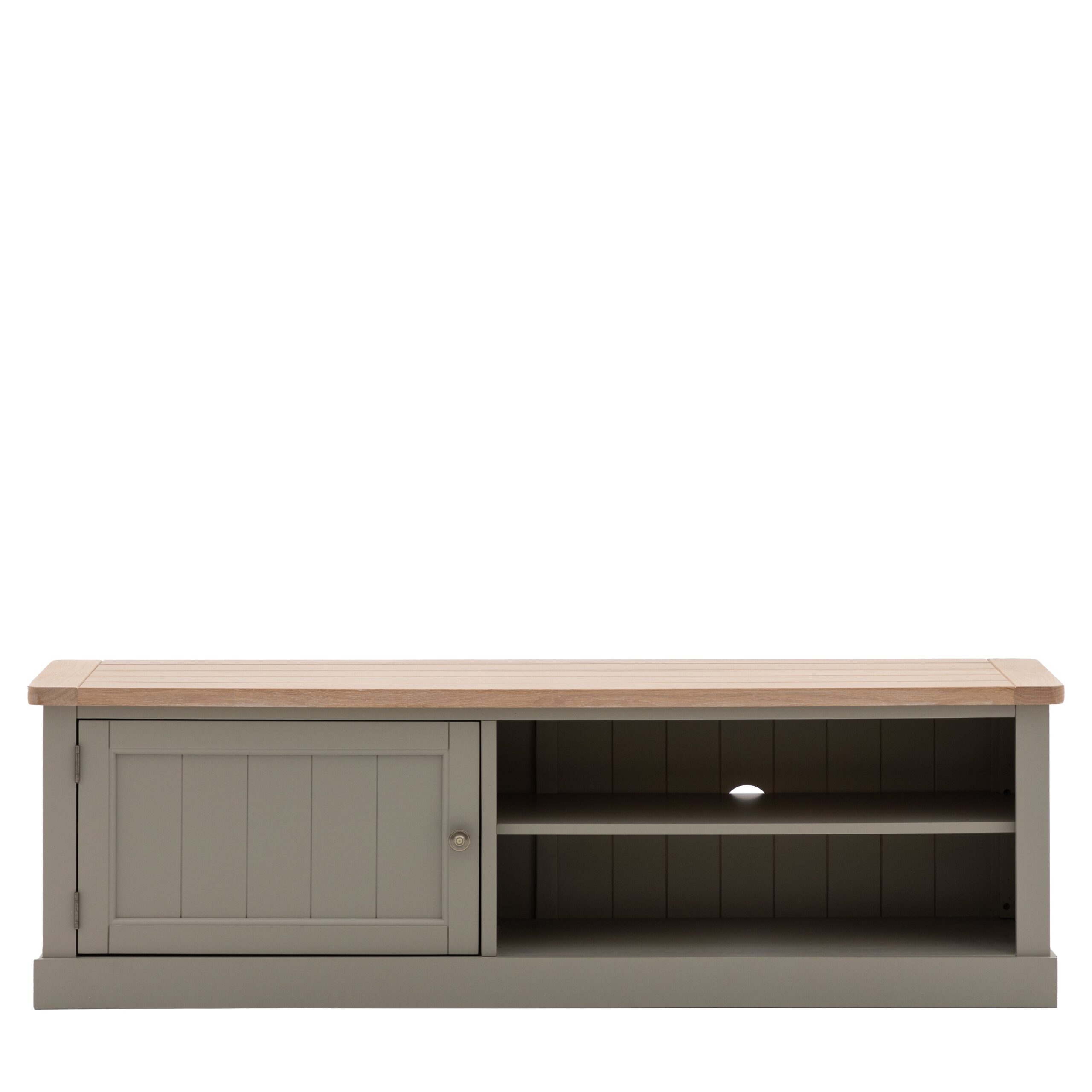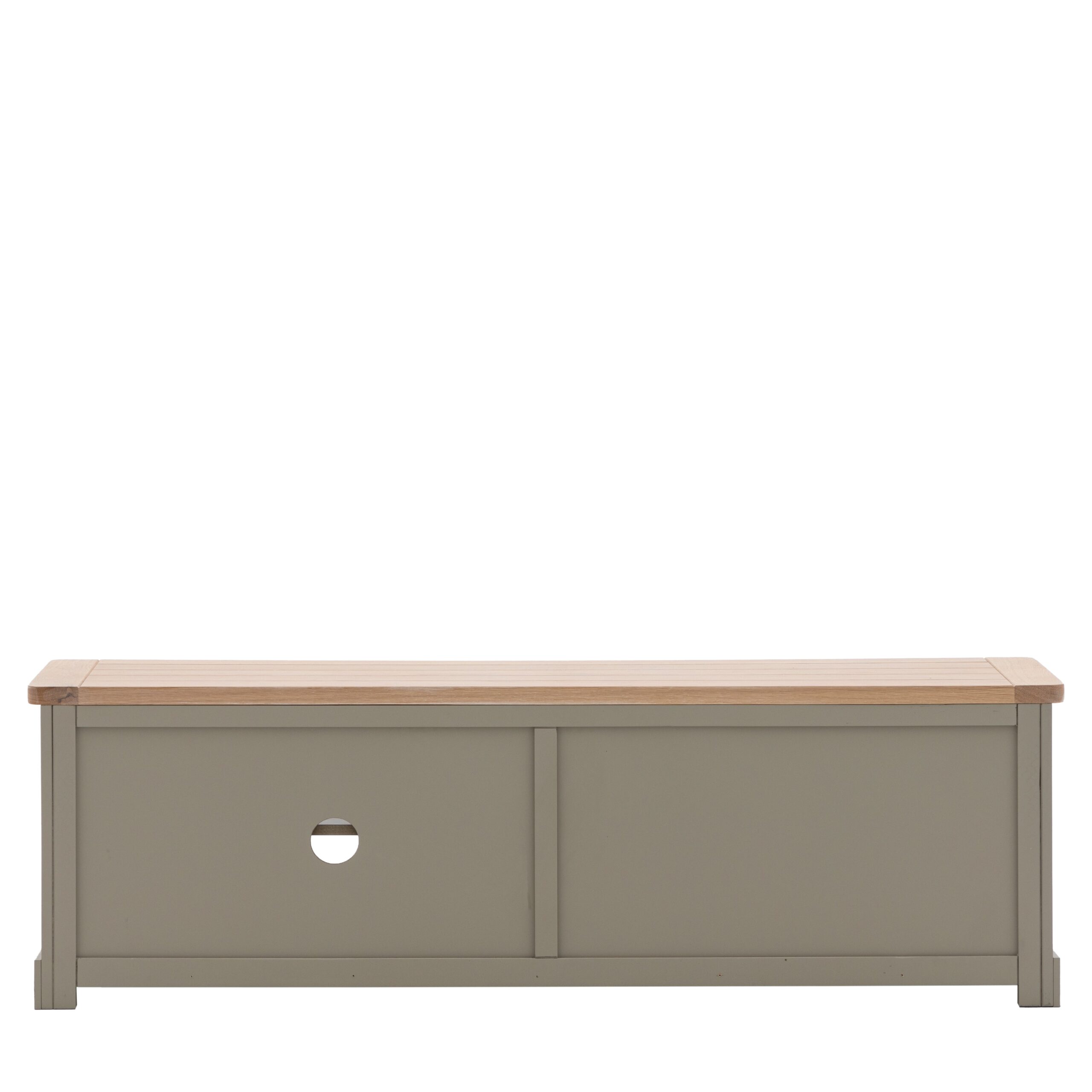 Experience a delightful blend of the classic and contemporary with this exquisite media unit. Crafted with impeccable attention to detail, the unit showcases a grooved and planked oak top that evokes a sense of timeless elegance. This rustic charm is beautifully juxtaposed against the unit’s hand-painted body, resulting in a harmonious interplay of textures and colours.