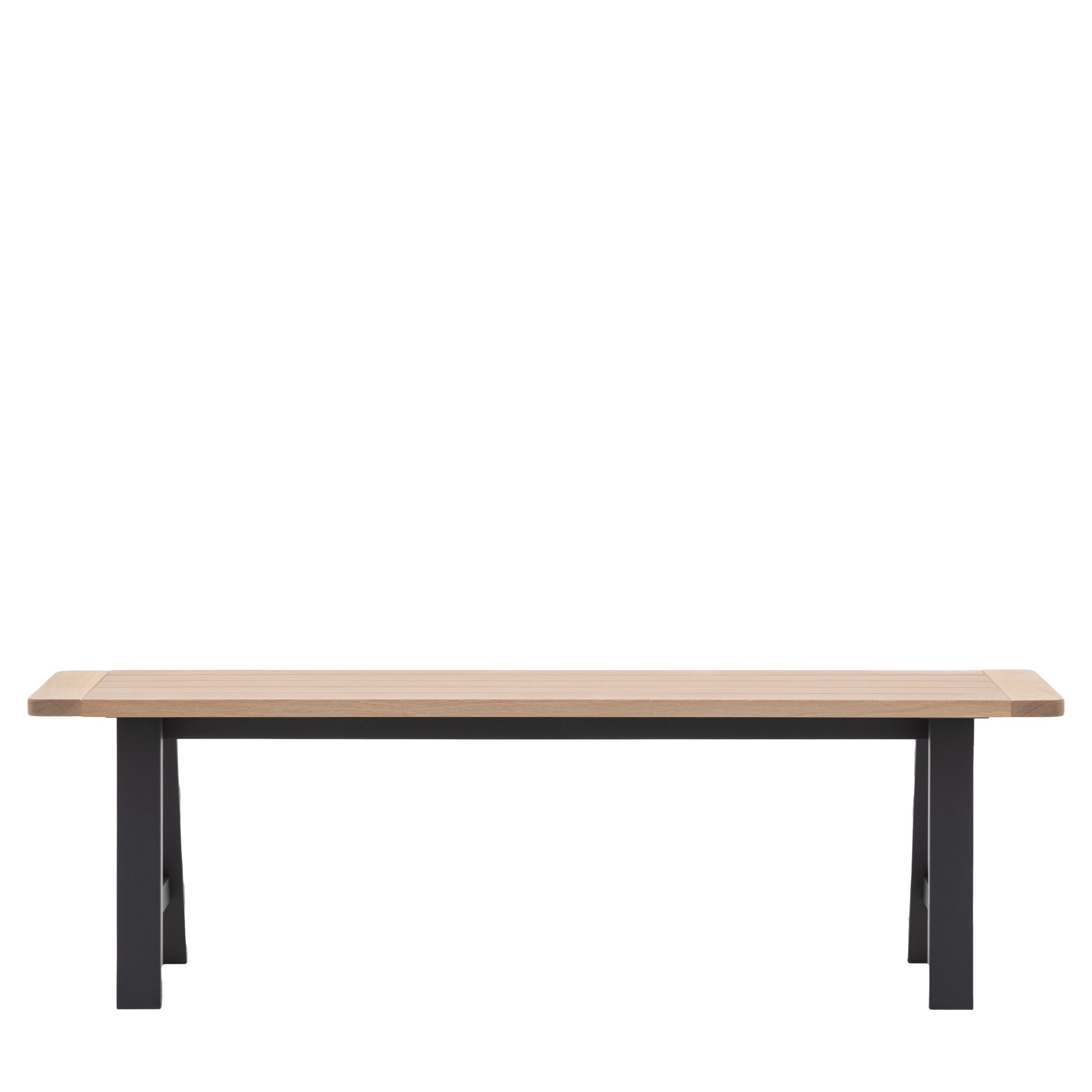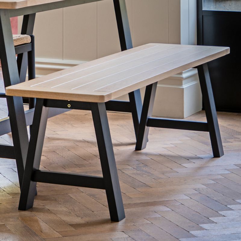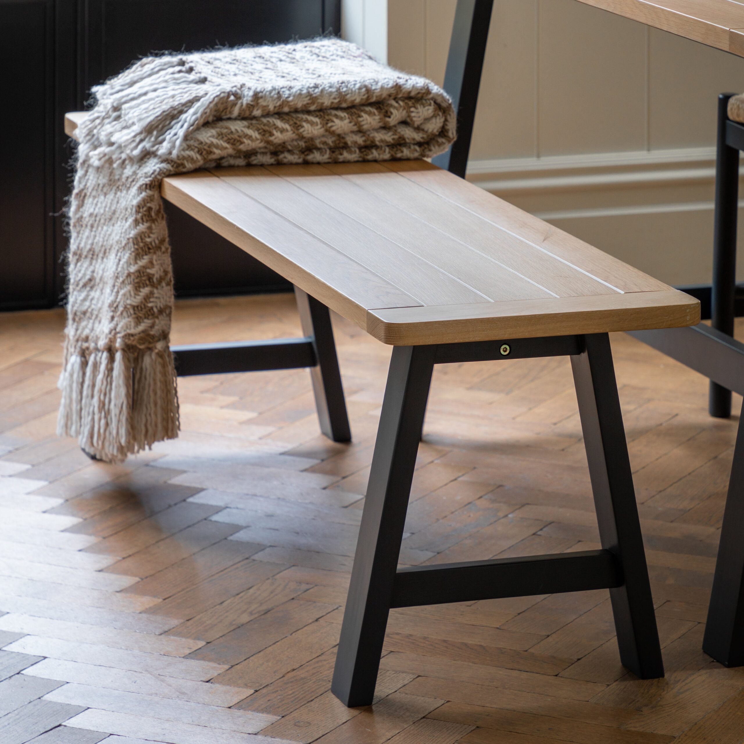 Introducing the Elton Trestle Dining Bench, an ideal choice for adding a touch of style and comfort to your dining space. The trestle design of this oak dining bench brings a hint of modern farmhouse charm while the modern details such as the hand-painted underframe, angled legs, and grooved and planked oak seat add a contemporary edge. Available in two colours, this oak bench is sure to make a statement and turn heads in any dining space. Pair with the matching Elton Farmhouse Dining Table for a wonderful wooden dining table with bench combination. No assembly required /Free Delivery to most mainland UK*