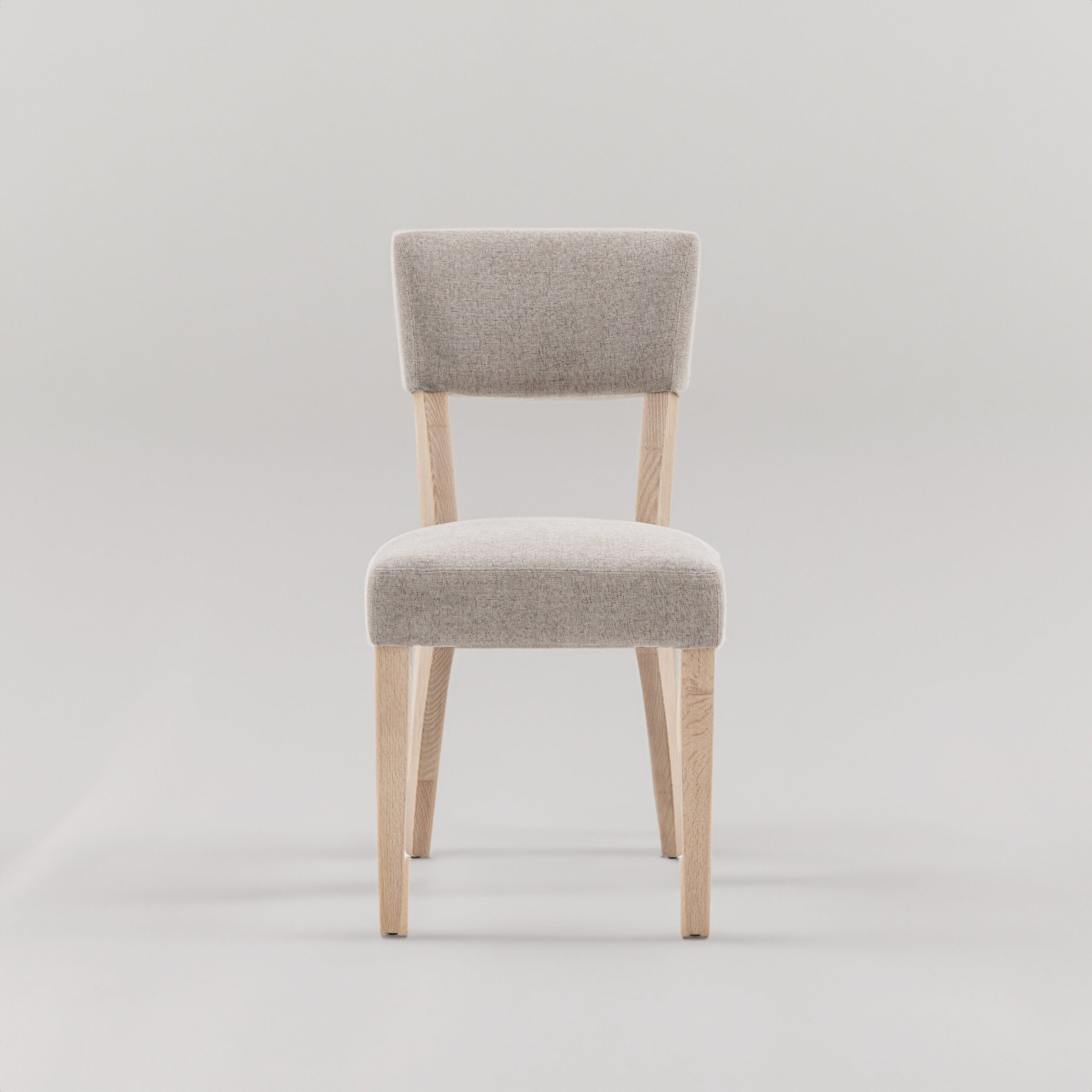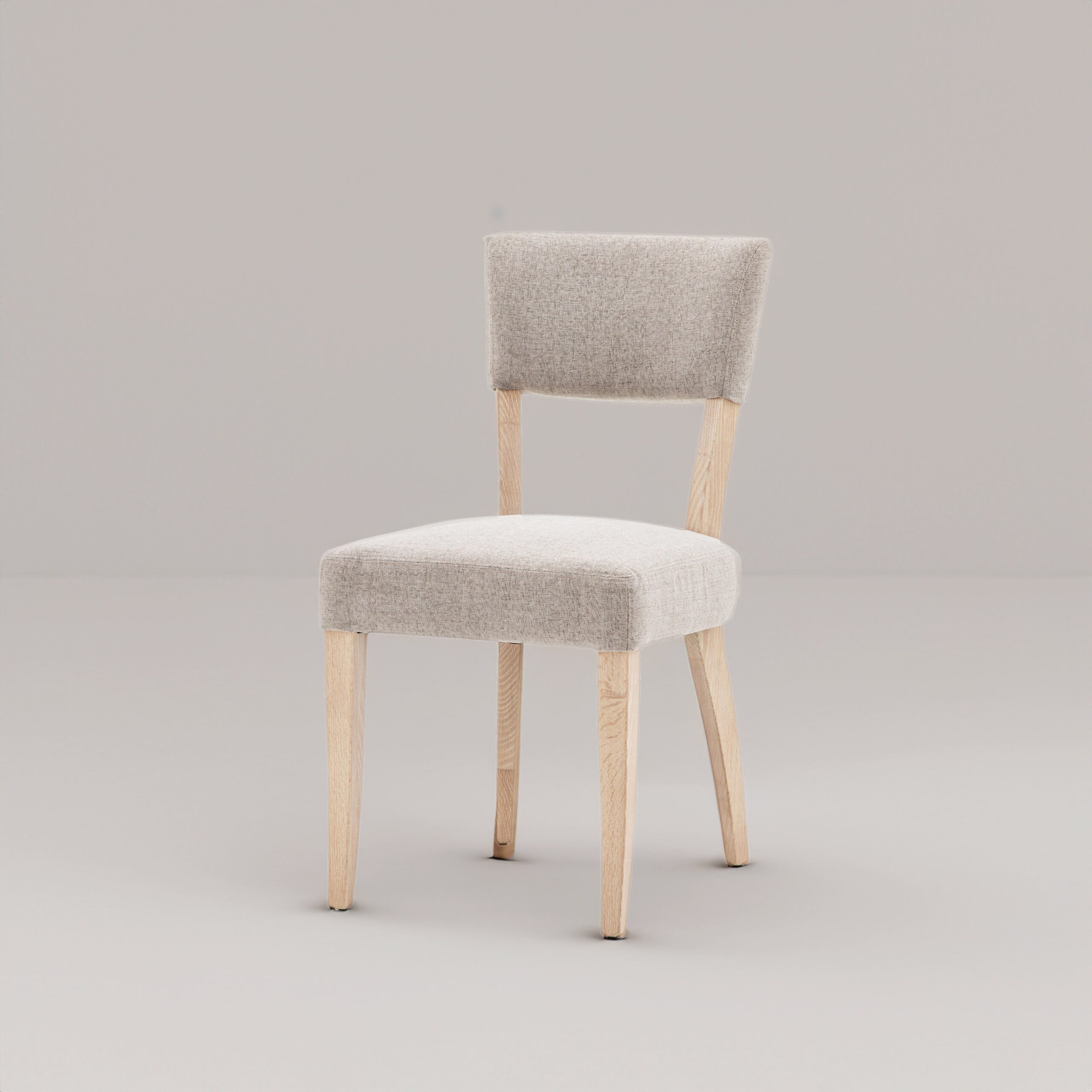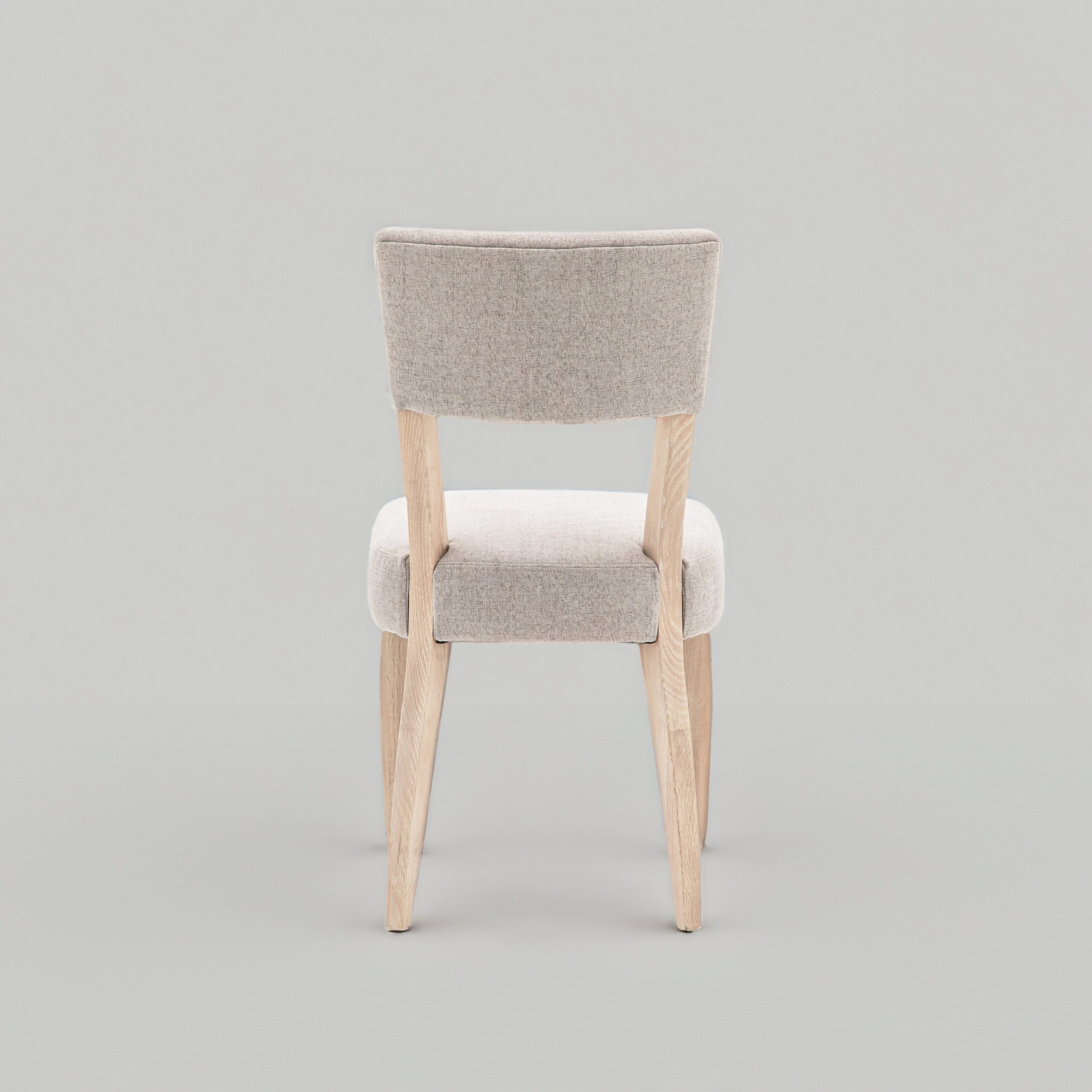 Set of 2 elegant upholstered dining chairs which are a perfect match to almost any dining table or interior from the traditional to the modern. Upholstered in light grey linen with gently curved oak legs for a elegant finishing touch.