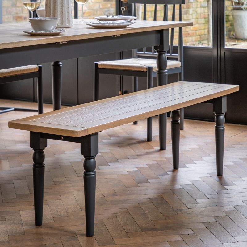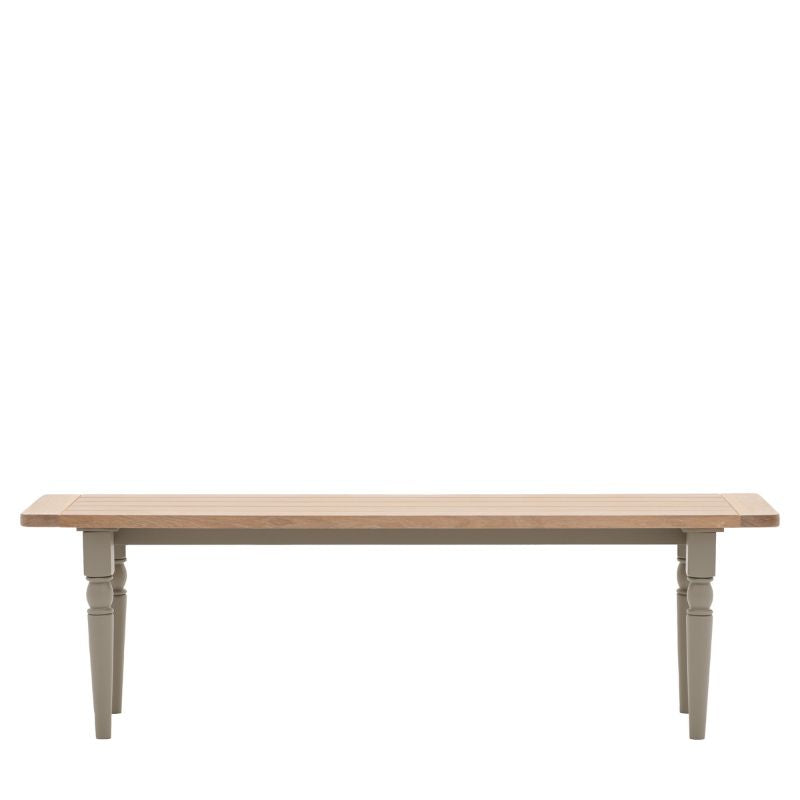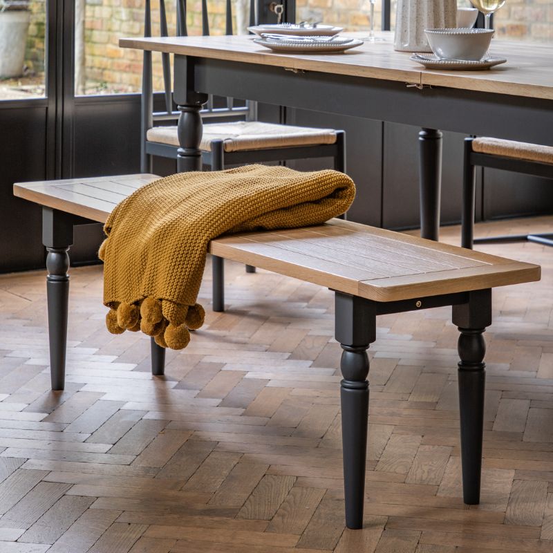 Add a touch of country charm to your dining space with this wonderful dining room bench. Kitchen benches are the epitome of modern farmhouse style and the Elton wooden dining bench has plenty to offer both the modern and traditional style home. The solid oak top and grooved seat provide a strong and comfortable base, while the hand-painted turned spindle legs lend a timeless and elegant look. For added comfort, cushions or seat pads can be added to the dining bench seat to ensure your family and guests enjoy the meal in absolute comfort. Available in two colours, pair this classic bench with the Elton Farmhouse Dining Table for an eye-catching table with bench combo that will make any dining space truly stand out. No assembly required /Free Delivery to most mainland UK*