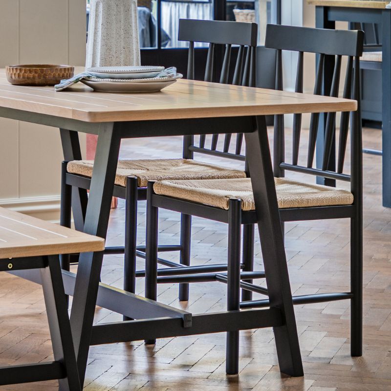Transform your dining room with this unique and stylish pair of wooden dining chairs. Combining contemporary lines with traditional features, these modern dining chairs provide a fresh take on a classic farmhouse chair. The hand-painted timber frame is perfectly complemented by the stylish hand-woven rope seat – bringing perennial style and inviting comfort to your dining space. Whether you are gathering around a farmhouse table for a family dinner or hosting a casual dinner party, these dining room chairs are sure to become a mainstay in your home. With their timeless design, you’ll never have to worry about them going out of style – they’ll be a part of your home for years to come. Pair with the Elton Farmhouse Dining Table and Elton Dining Bench for a coordinated and stylish look. No assembly required /Free Delivery to most mainland UK*