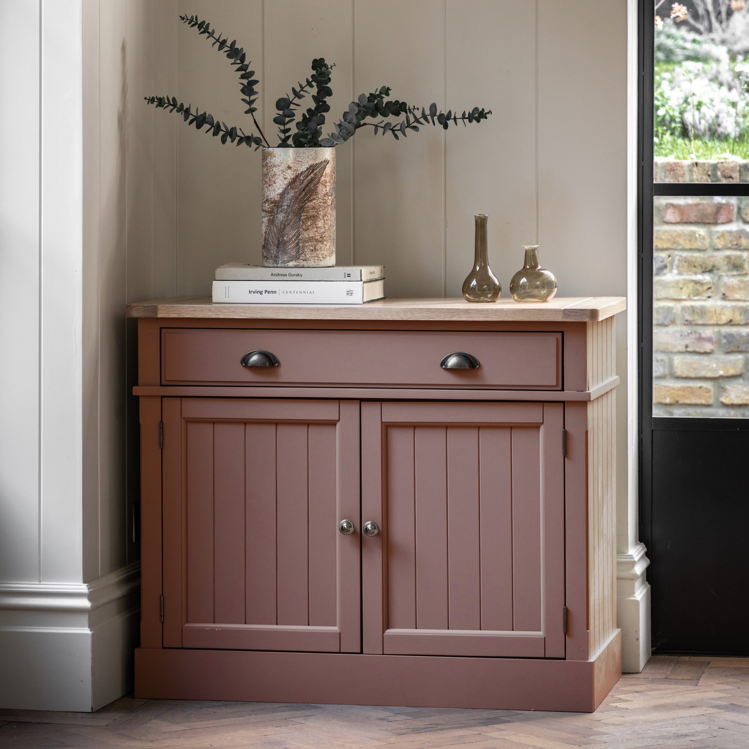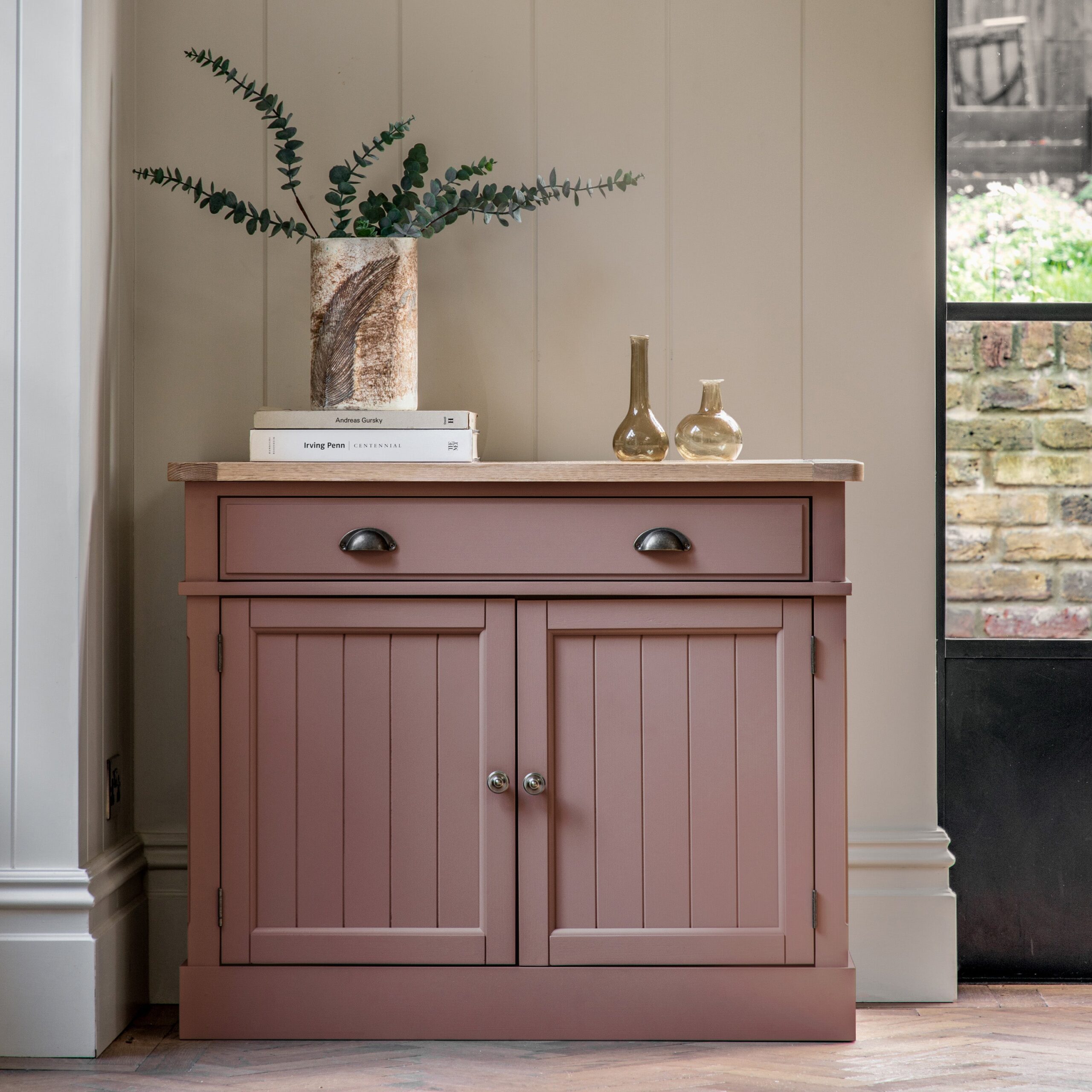 A solid wood sideboard that is both stylish and practical is a thing of beauty and the eye-catching Elton Wooden Sideboard is the perfect blend of function and form. The large drawer and two deep cupboards provide plenty of storage space, while the adjustable shelves offer further flexibility. Sporting a grooved and planked natural oak top, the hand-painted and subtly textured grooved doors of this painted sideboard give it a timeless style with the metal cup handles adding an instant modern farmhouse feel. Perfect for rustic or contemporary interiors, this wooden cabinet is a must-have addition to any kitchen or dining area. Assembly required /Free Delivery to most mainland UK*