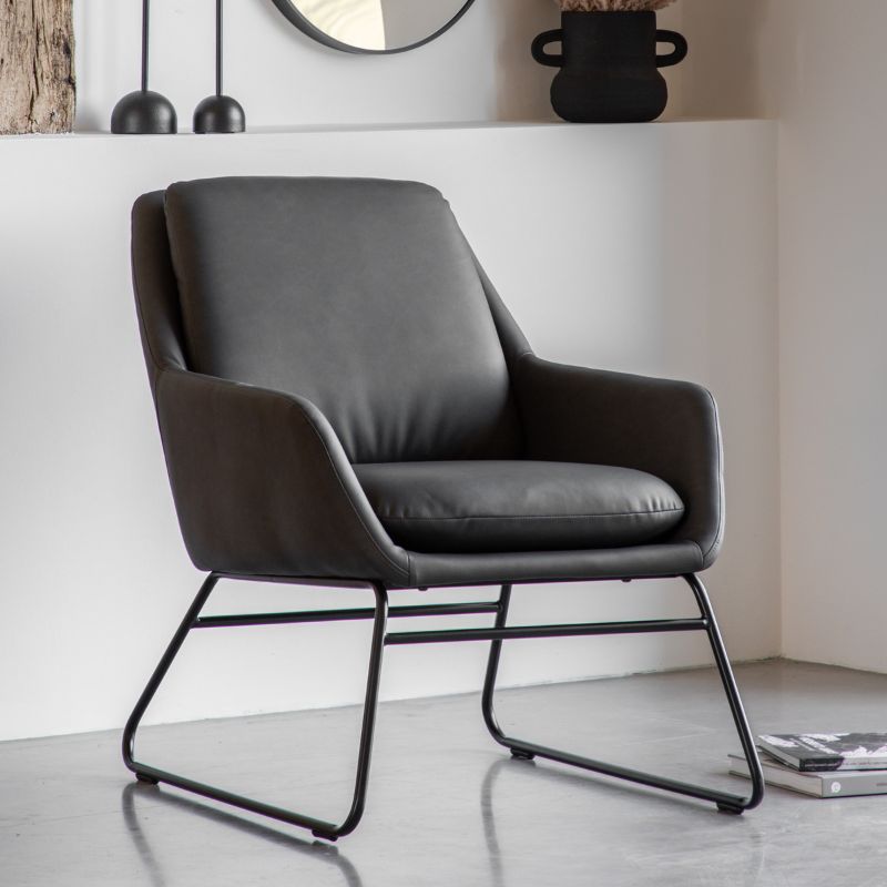 Charcoal Grey Armchair in Faux Leather