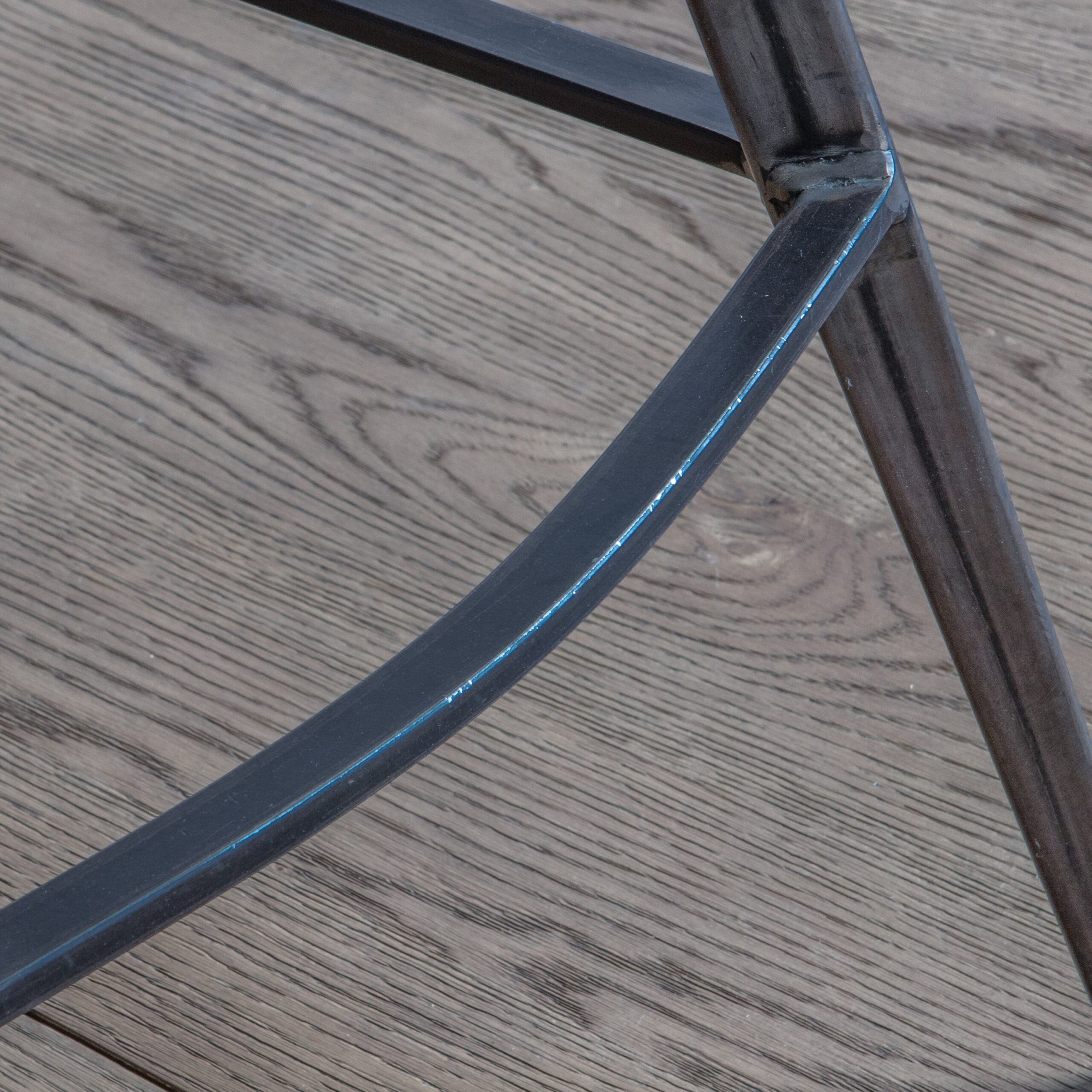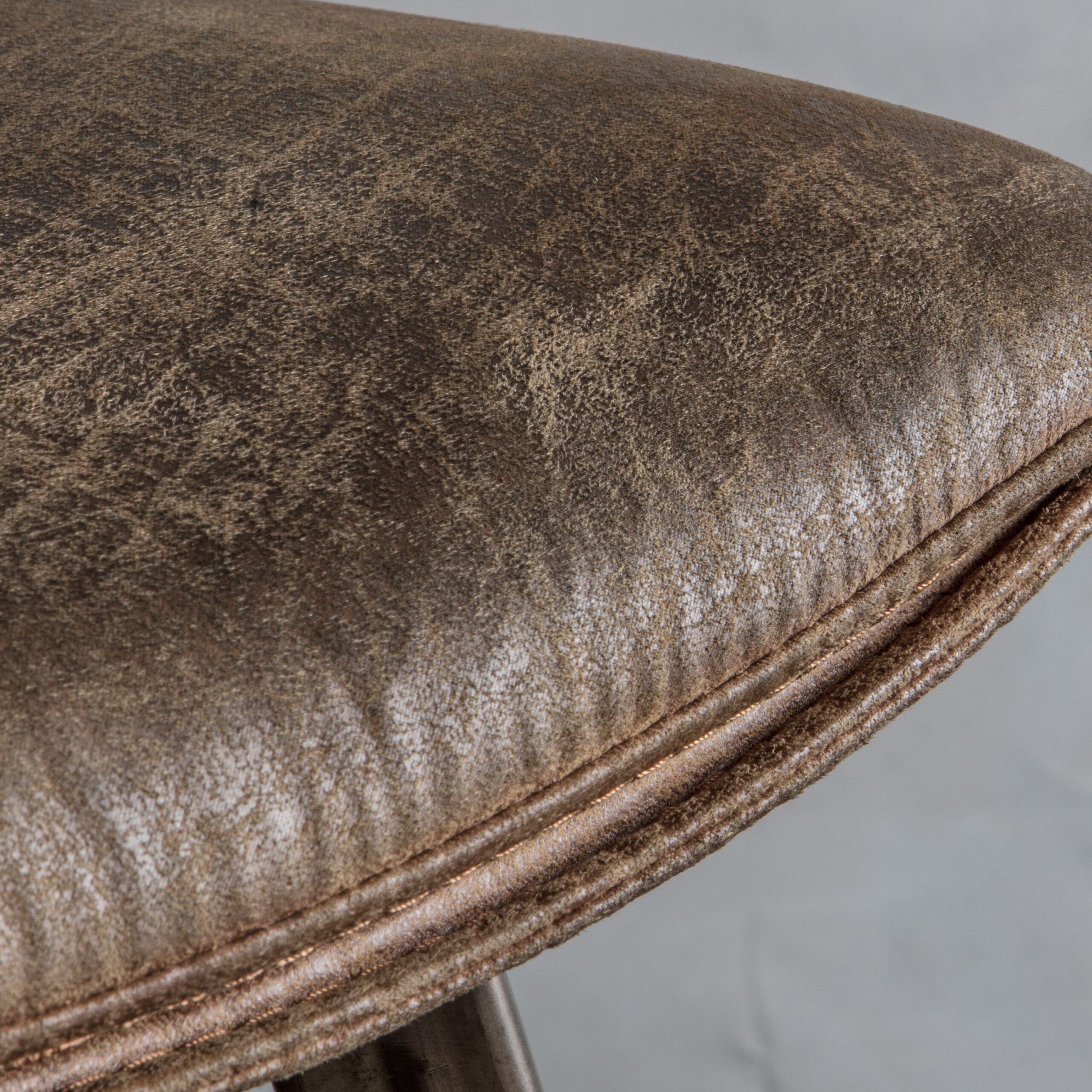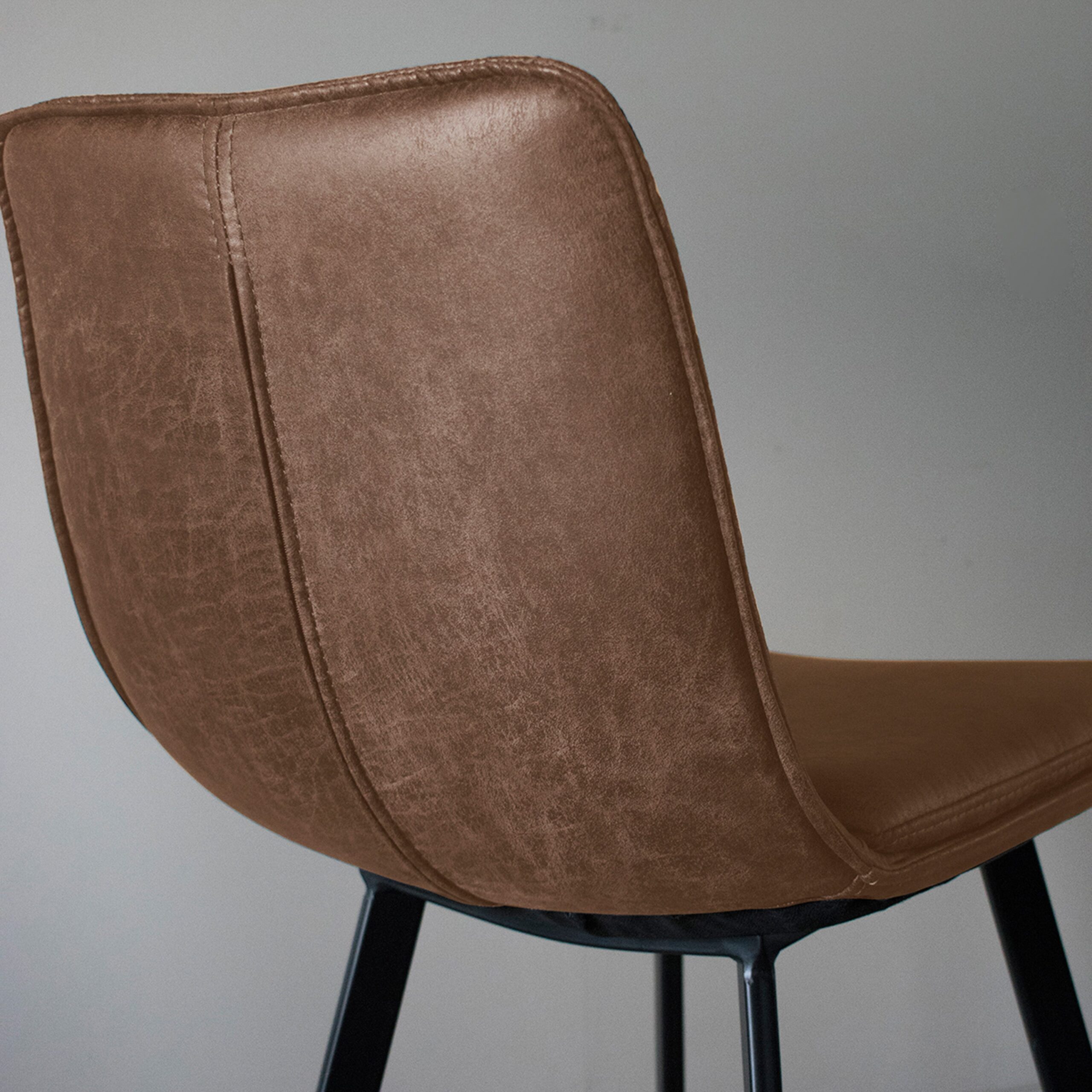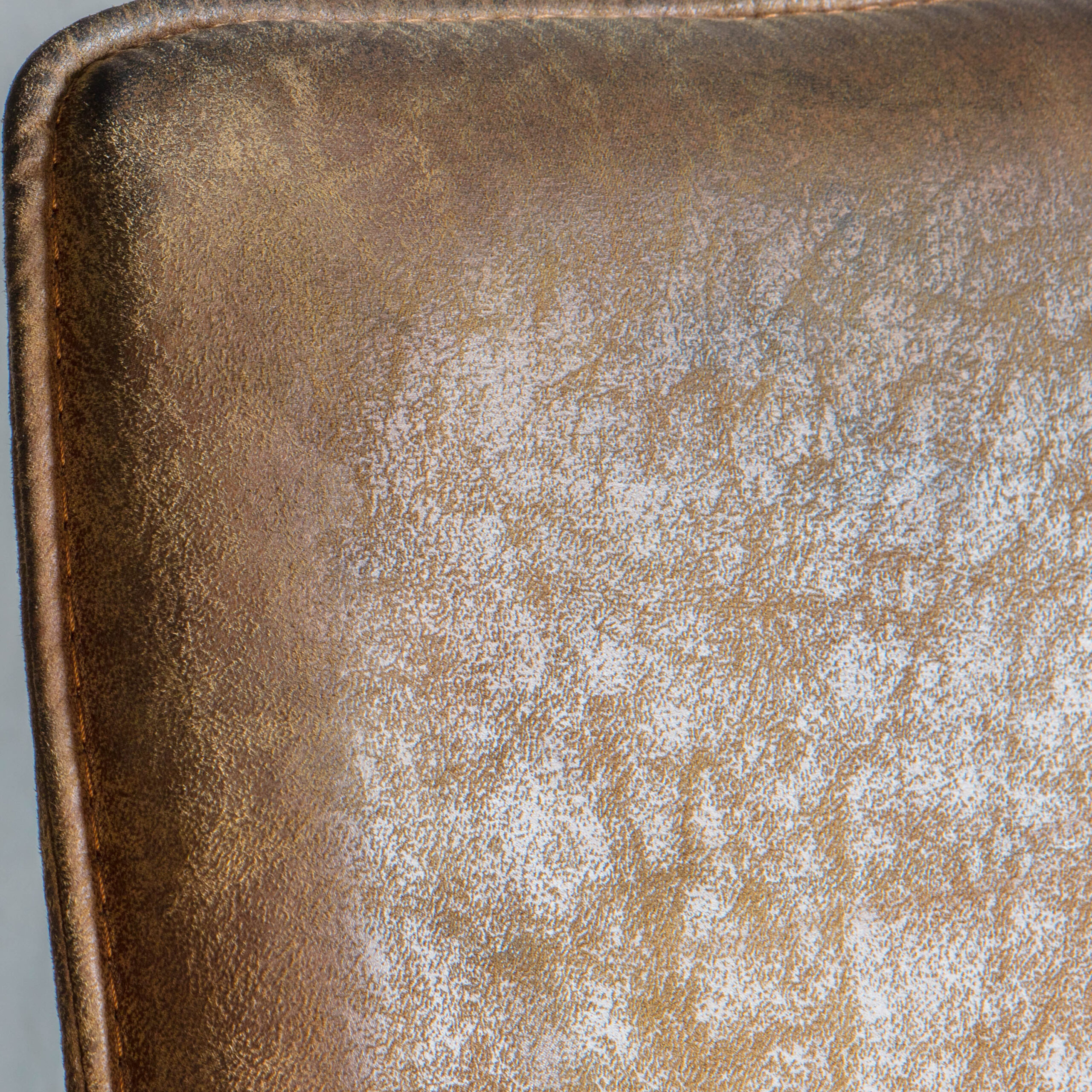 A contemporary design with a rustic twist, this stylish vintage brown faux leather bar stool is perfect for casual dining areas, featuring stitched seam detailing and sleek angled bronze metal legs.