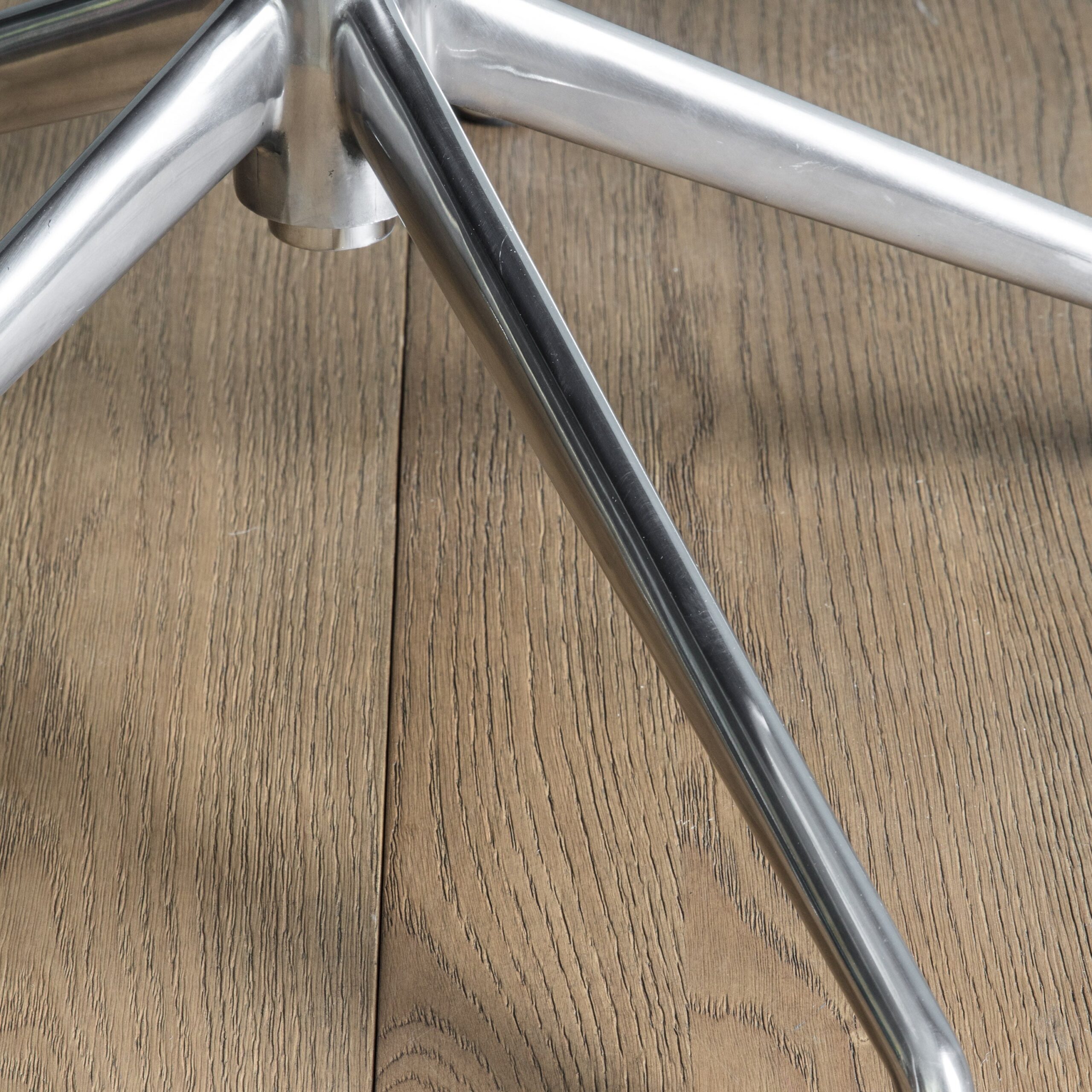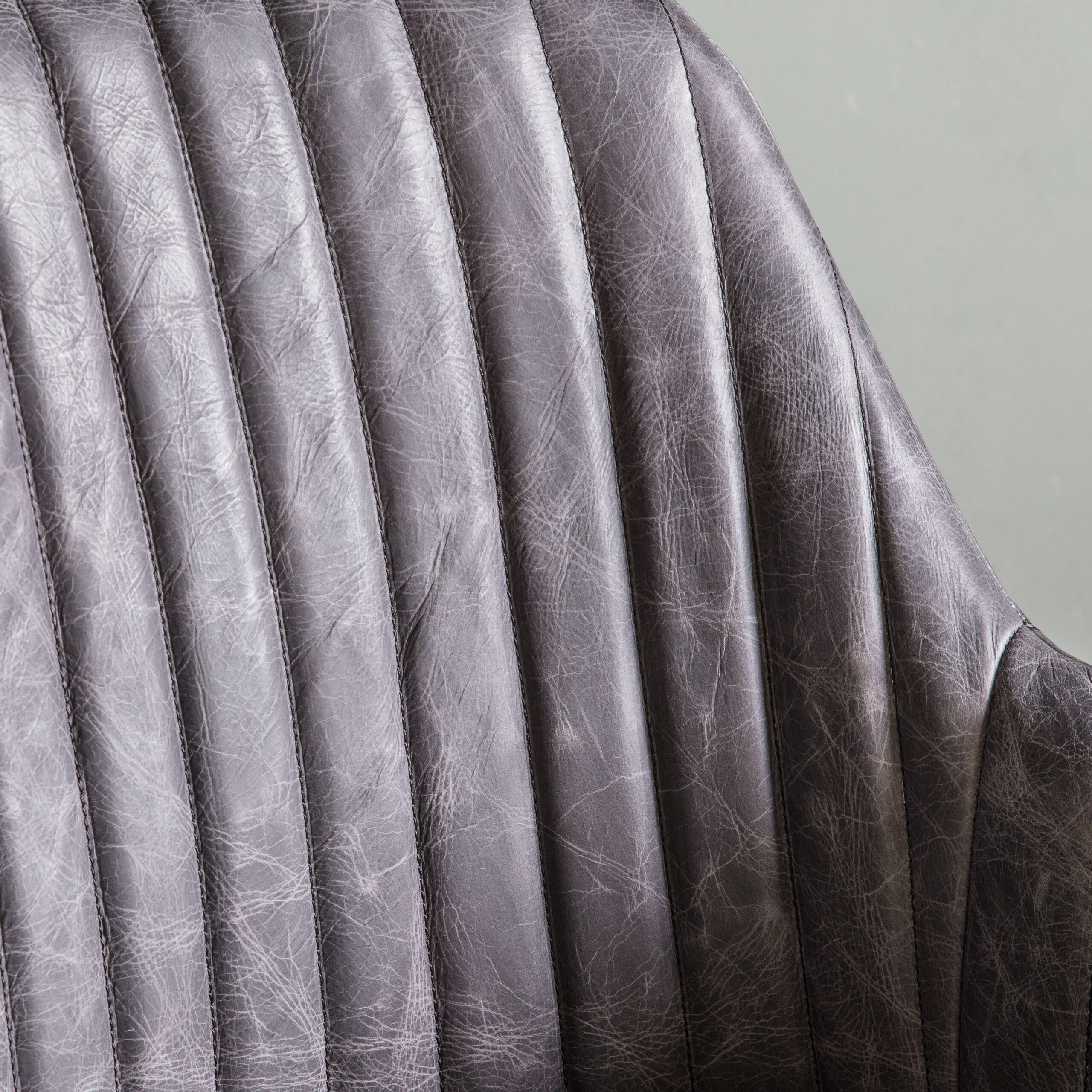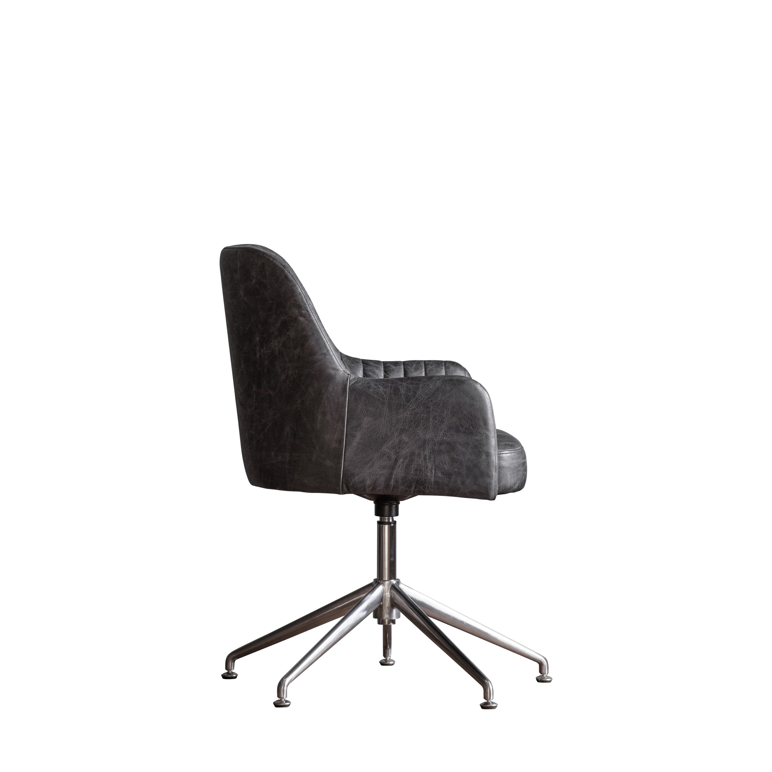 Discover the perfect blend of classic elegance and modern functionality with the Heritage Swivel Chair in Antique Ebony. Ideal for any home office setting, this chair boasts genuine full leather hide upholstery, accented with distinctive vertical stitching. Prioritising comfort, it features a deeply cushioned seat and a lightly padded back and sides. Its robust base, adorned with a sophisticated silver finish, ensures stability while you work. Although the seat offers a smooth swivel function, please note its height remains fixed. Upgrade your workspace aesthetics with this timeless office chair design.