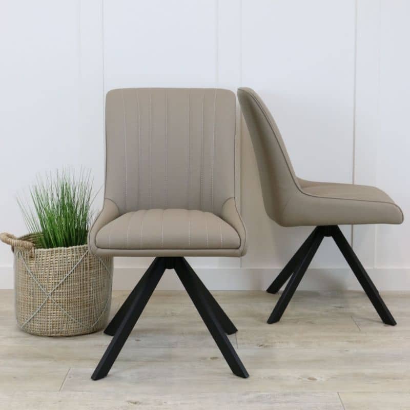 A fine example of how comfort and design can sit side by side, these classic contemporary dining chairs will sit effortlessly with any style dining table, from a reclaimed wood dining table to an industrial dining table. What’s more, the faux taupe leather of the upholstered dining chairs makes them easy to care for with no need to worry about accidental spills.