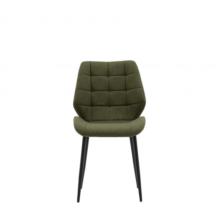 Discover a pair of modern dining chairs, drawing inspiration from the timeless Mid-Century aesthetic. Perfectly adaptable, these chairs seamlessly fit both your dining area and home office. Their distinctive shaped back and gracefully curved seat are adorned in a rich bottle green upholstery, enhanced with intricate stitch details for a contemporary flair. Comes in a set of 2.