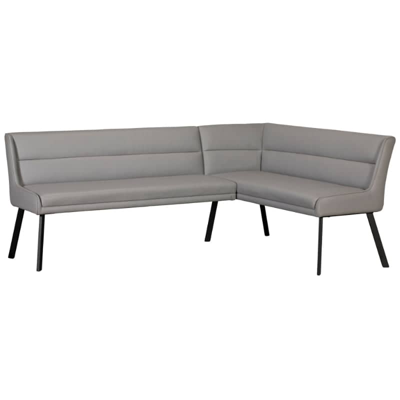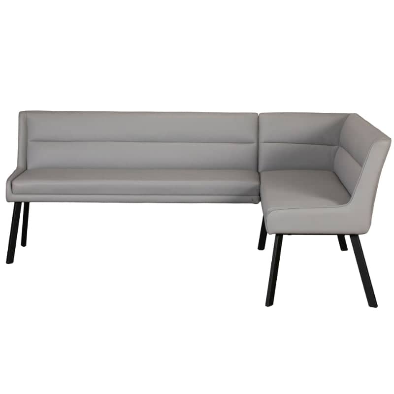 If you love the streamlined aesthetic of Italian design the Liza grey Corner Table Bench will catch your eye. Beautifully crafted in light grey, soft faux leather, this upholstered dining bench is perfect for homes wanting to comfortably seat more people in smaller spaces without compromising on style. The angled matt black metal legs complement the elegant shape of this dining bench with back and the split panelled stitch detailing on the backrest adds comfort as well as interest. Exuding style and minimalist sophistication, this corner dining bench will make a stunning addition to contemporary homes.