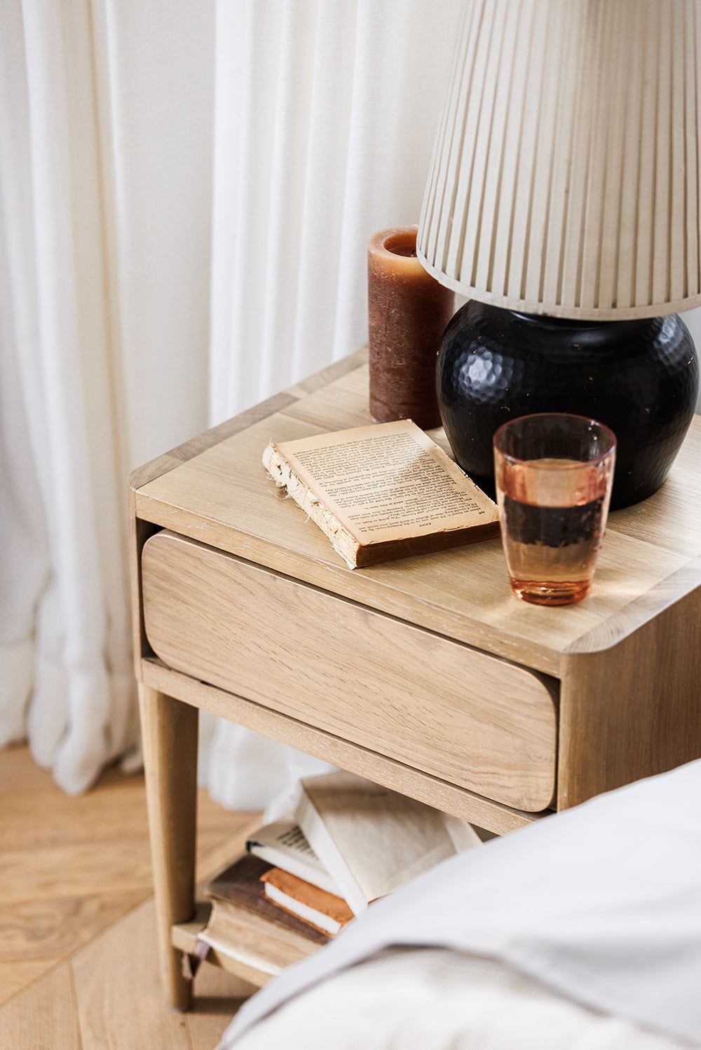 The Luna 1-Drawer Bedside embodies simplicity and function. Crafted from the finest rustic oak, this piece offers a sturdy drawer and a spacious top, perfect for keeping your nighttime essentials within arm’s reach.