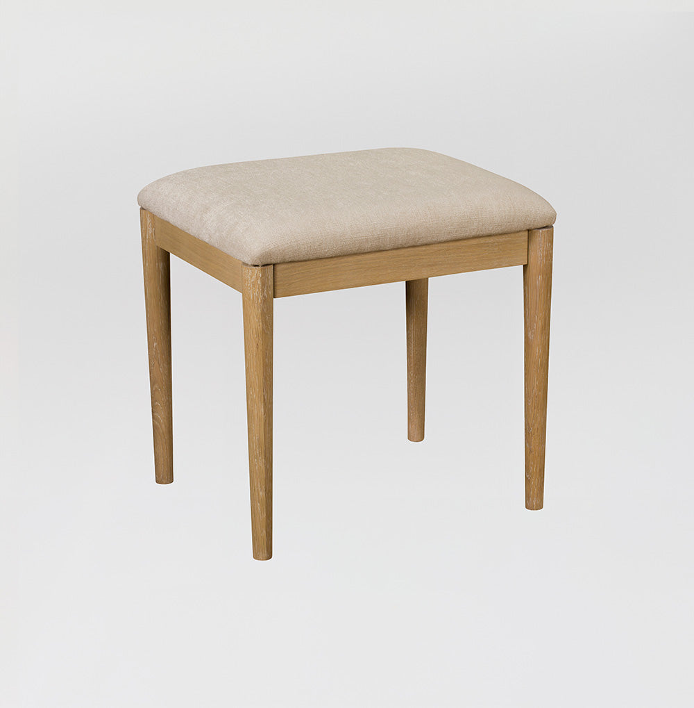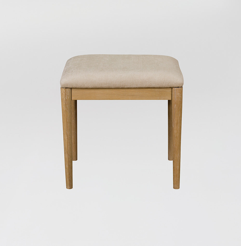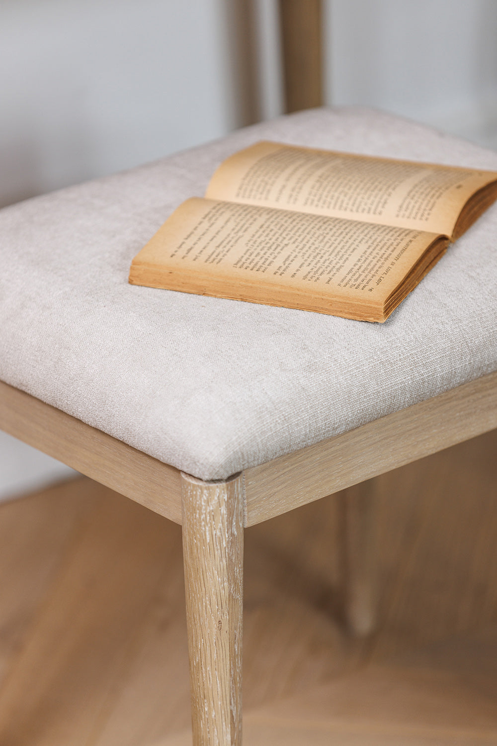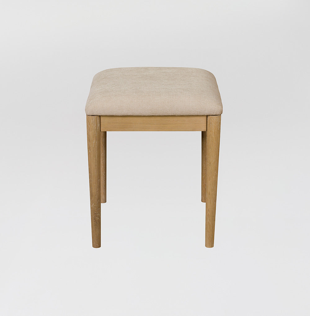 Complete your dressing area with the Luna Upholstered Stool. Its cushioned seat offers comfort, while the oak legs ensure stability and match the natural aesthetic of the Luna collection.