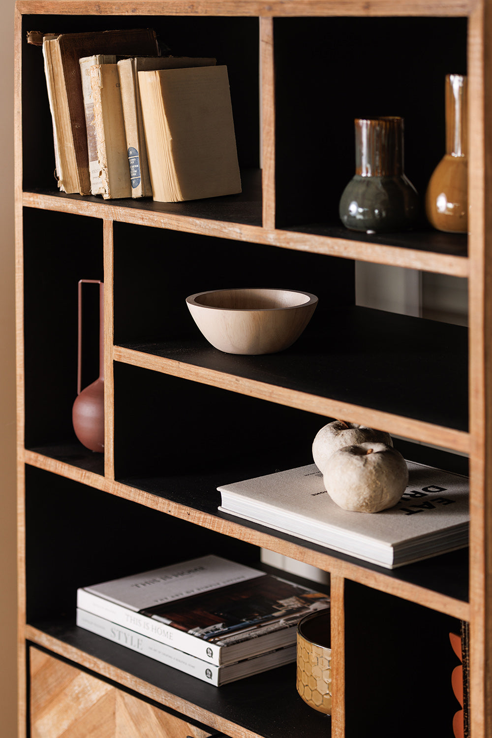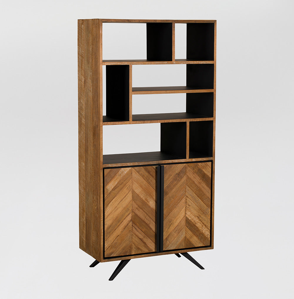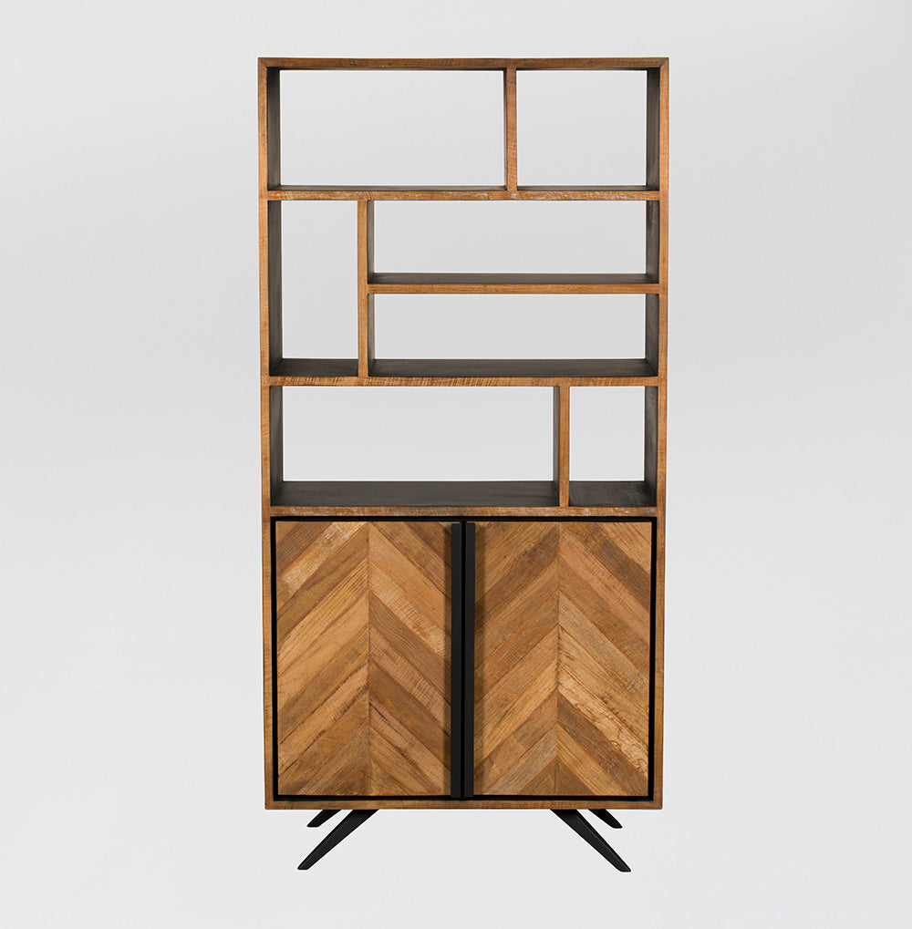Curate your collection of books, artefacts, and memories with our Mayfair Reclaimed Wood Bookcase. Meticulously crafted from reclaimed wood, this piece brings a story to your home with its rich history and distinctive wood grain patterns. The herringbone design on the cabinet doors adds an artisan touch, while the contrast of natural wood and dark metal frame infuses a contemporary edge into any room. This bookcase offers a sophisticated solution for your storage needs, with multiple shelves for an organised display. Make a sustainable choice with this eco-friendly addition to our Mayfair range that combines timeless design and modern functionality to create a focal point in your living space that is both beautiful and practical.