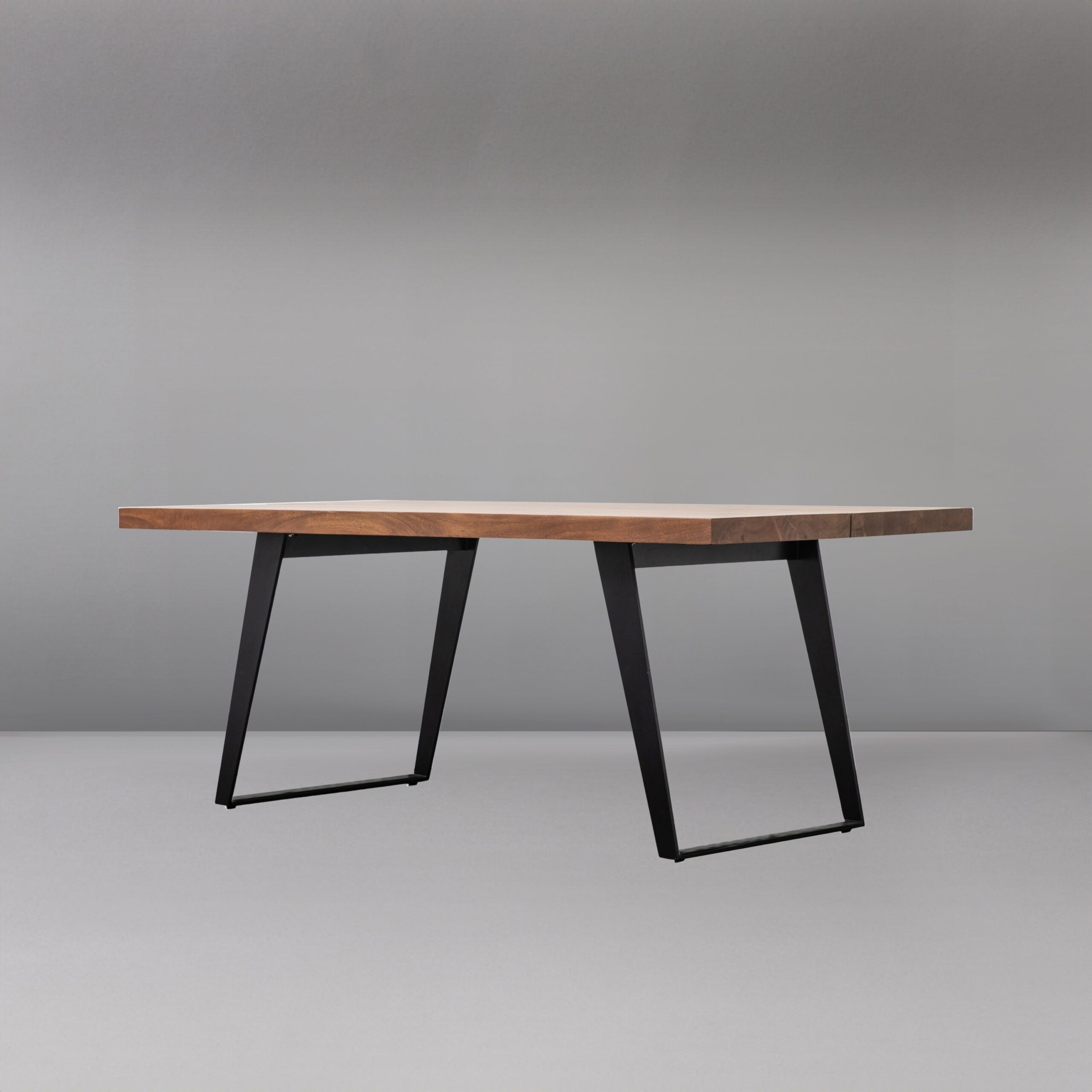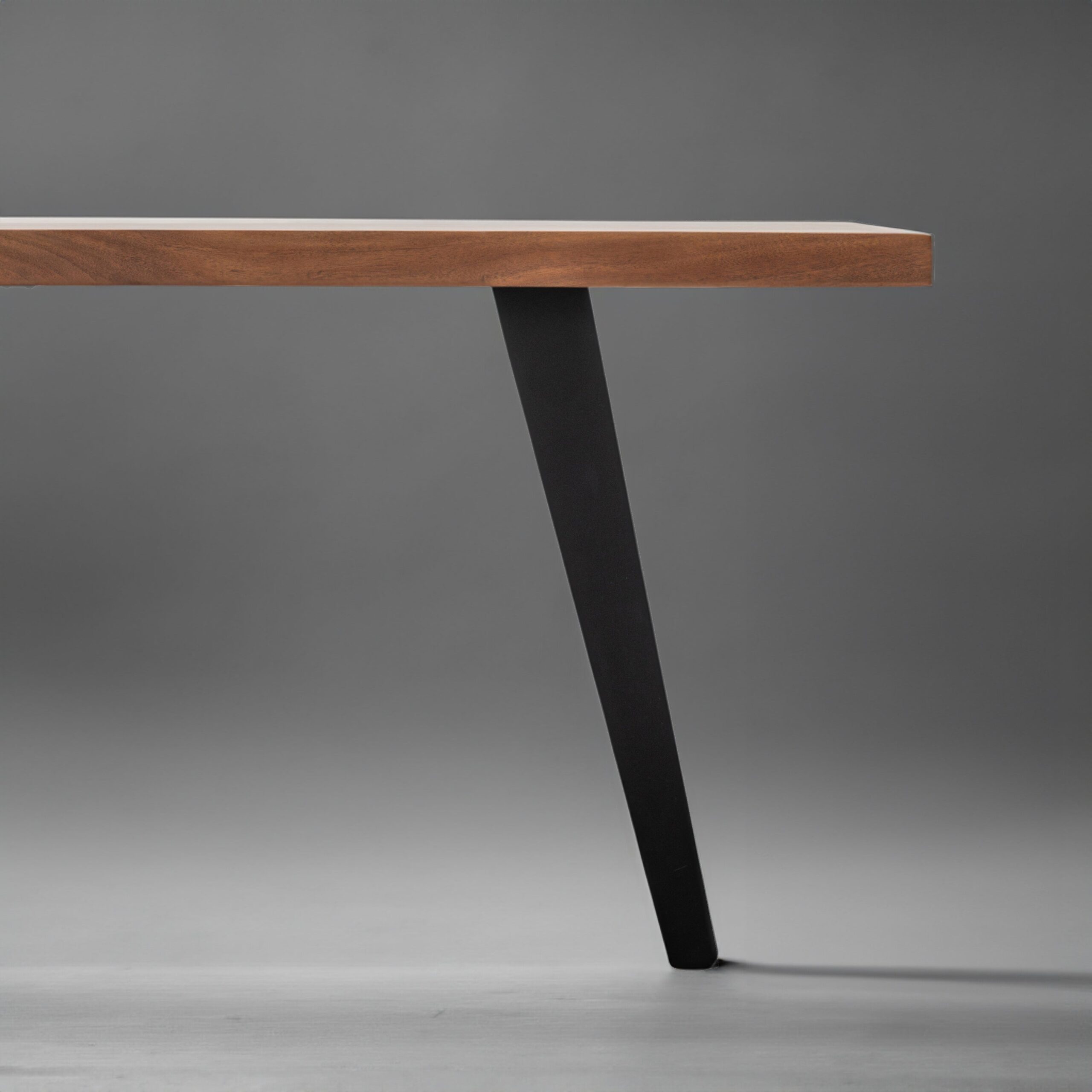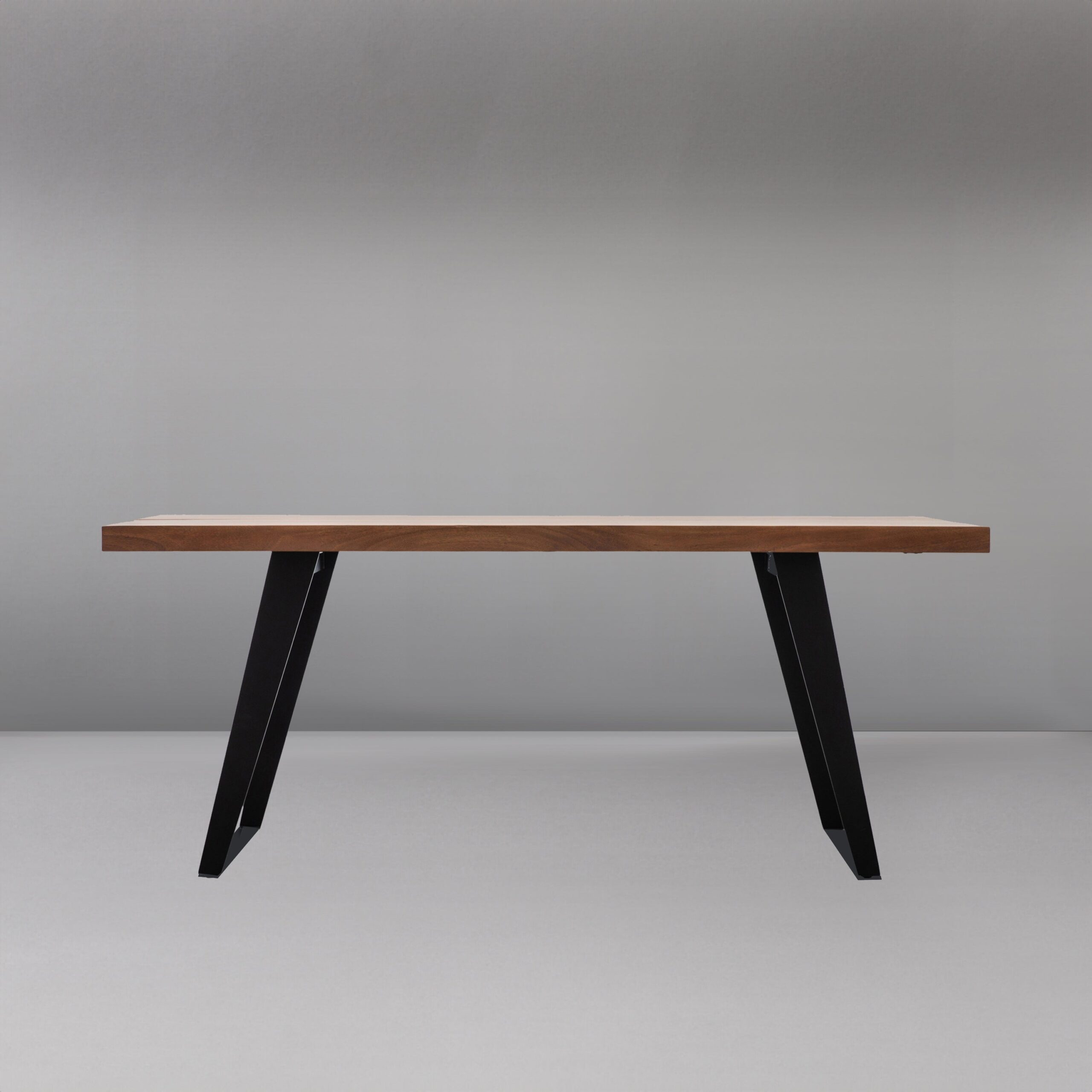 A sleek contemporary twist on a timeless look. Made with a solid wood top and paired with elegant and clean angular metal legs, this dining table is a beautiful addition to a wide range of living spaces. Paired perfectly with the Newton Dining Bench.