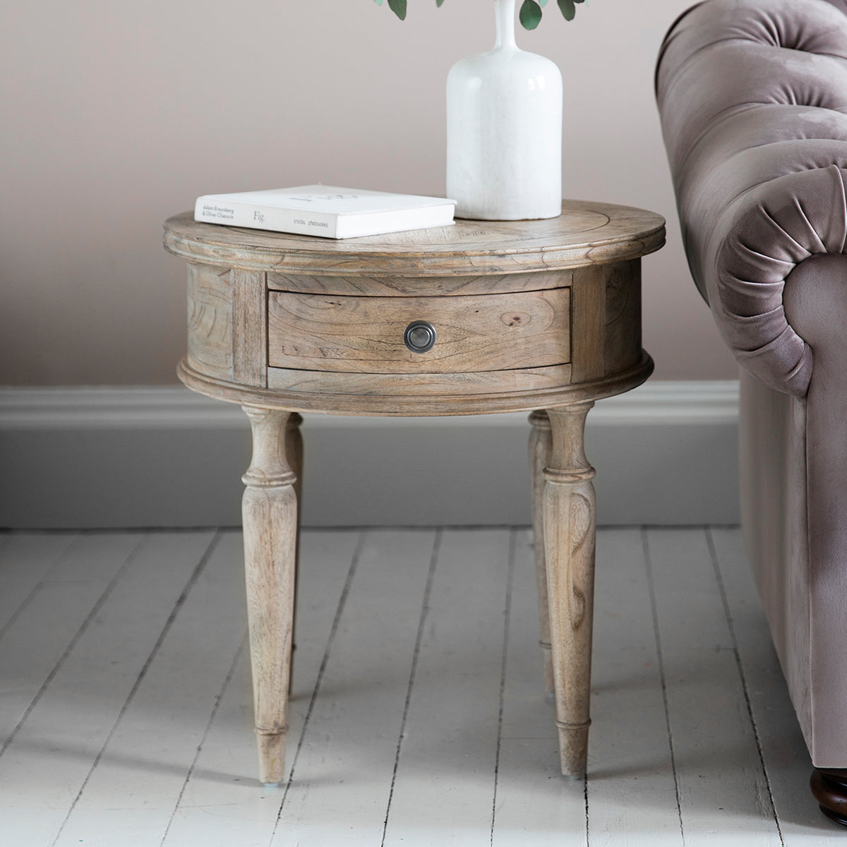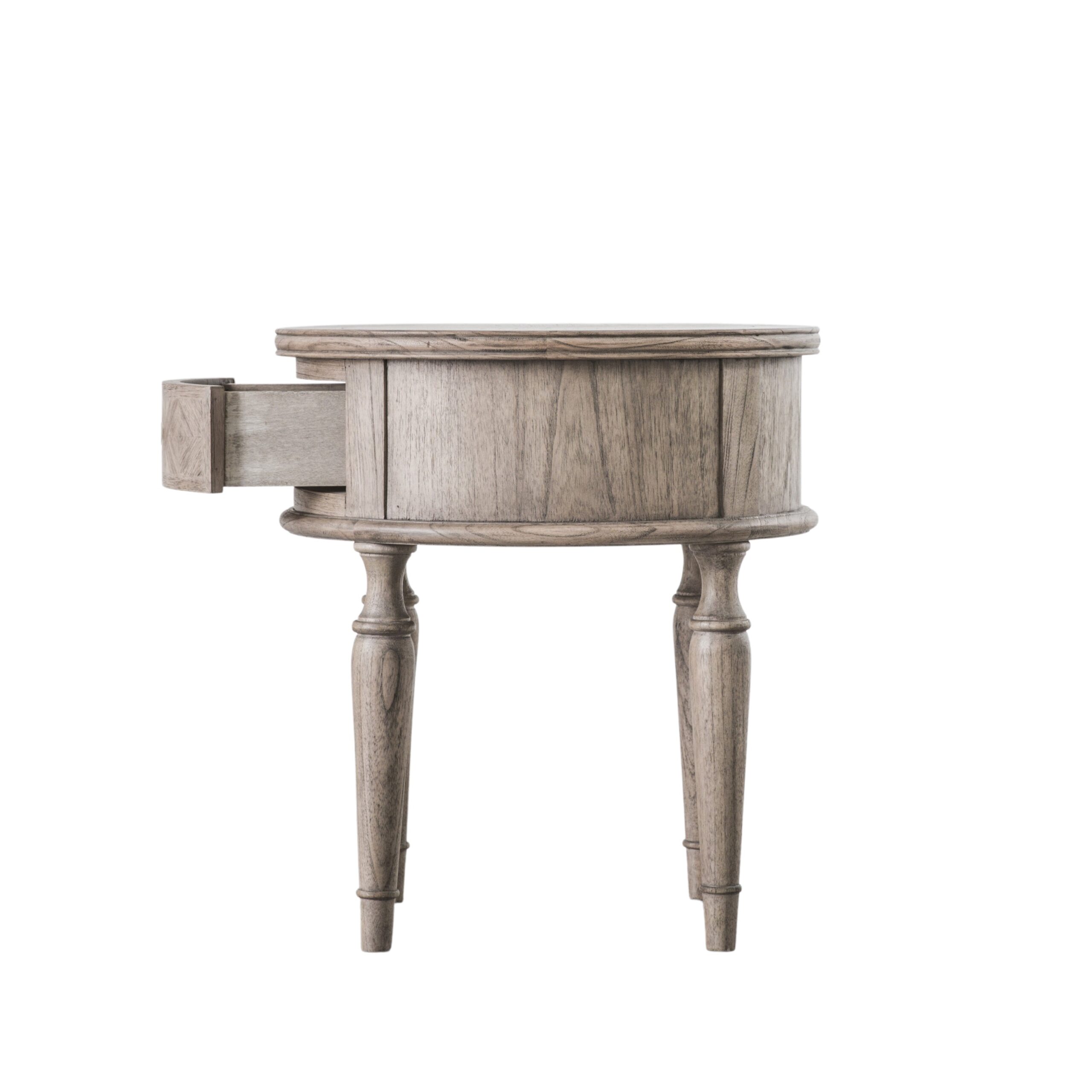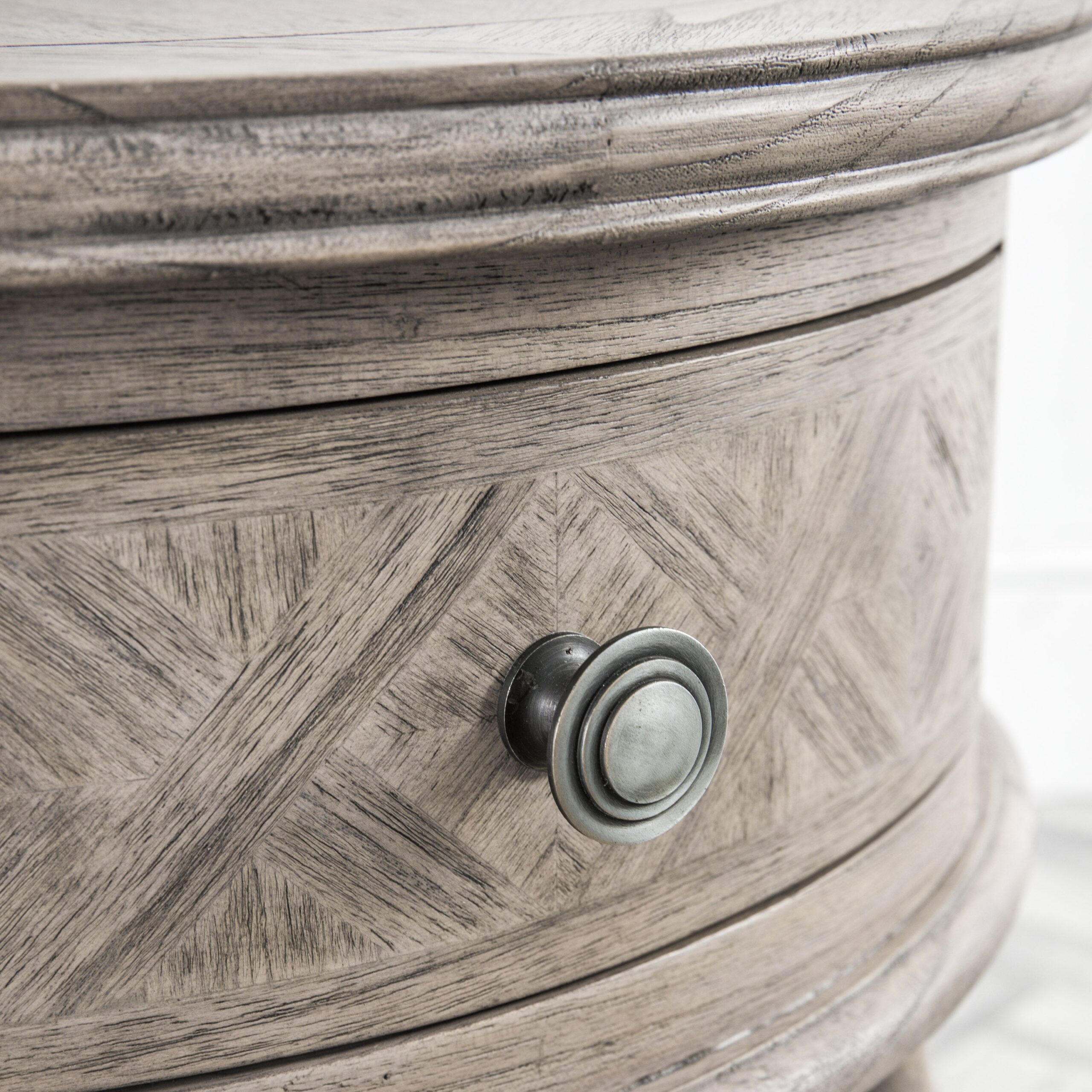 Experience the allure of French colonial elegance with the Parquet Round Side Table. Meticulously crafted from premium mindy ash, this table radiates sophistication with its parquet veneer inlays. A lightly brushed natural finish reveals the intricate patterns and rich grains of the wood. The design is thoughtfully complemented by a single drawer, adding a touch of functionality to its undeniable charm. This side table is not just a piece of furniture; it’s a statement in timeless artistry.