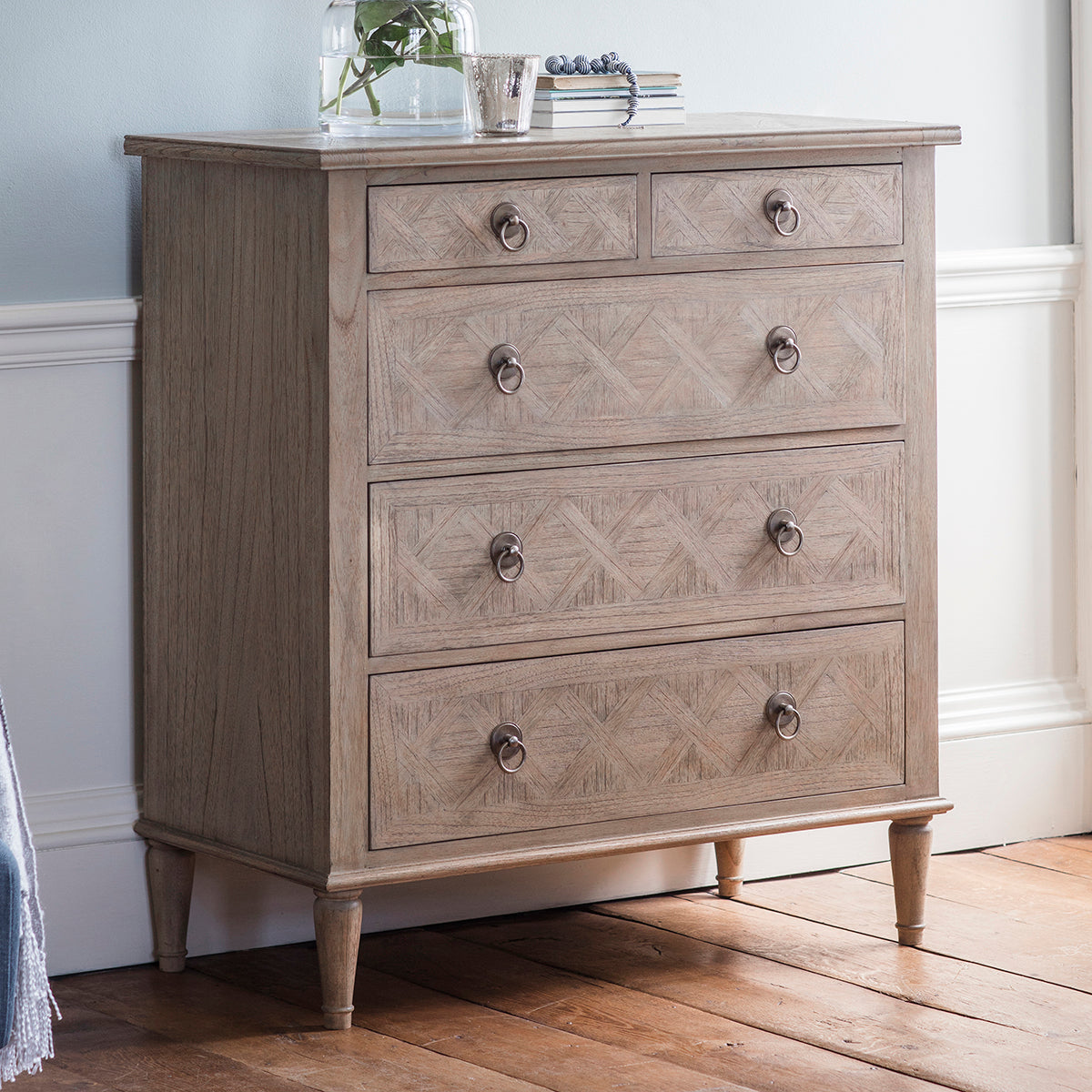 Its neutral tone and classic design ensure it complements both traditional and contemporary interiors. Equipped with multiple drawers, this chest offers ample storage space, making it as functional as it is aesthetically pleasing. Elevate your room’s ambiance with the Parquet Chest of Drawers, where design meets utility.