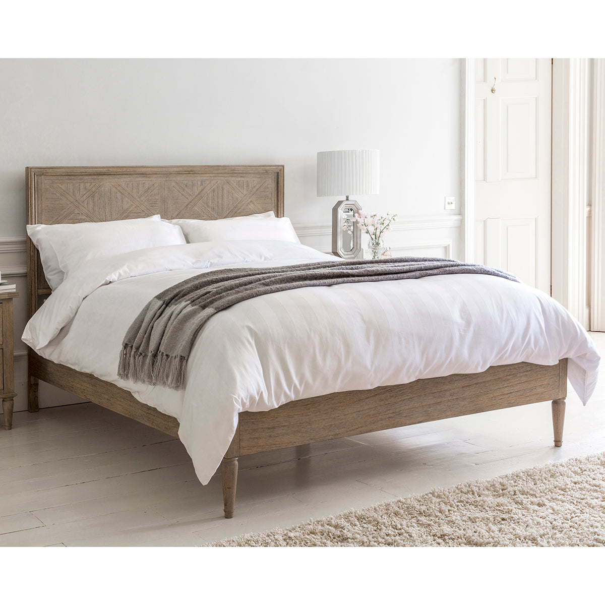 Its design exudes a gentle nod to the French Colonial style, yet its clean lines and neutral colour palette make it versatile enough to grace both contemporary and traditional interiors. Ensure a serene night’s sleep and a touch of sophistication to your bedroom with the Parquet Bed.
