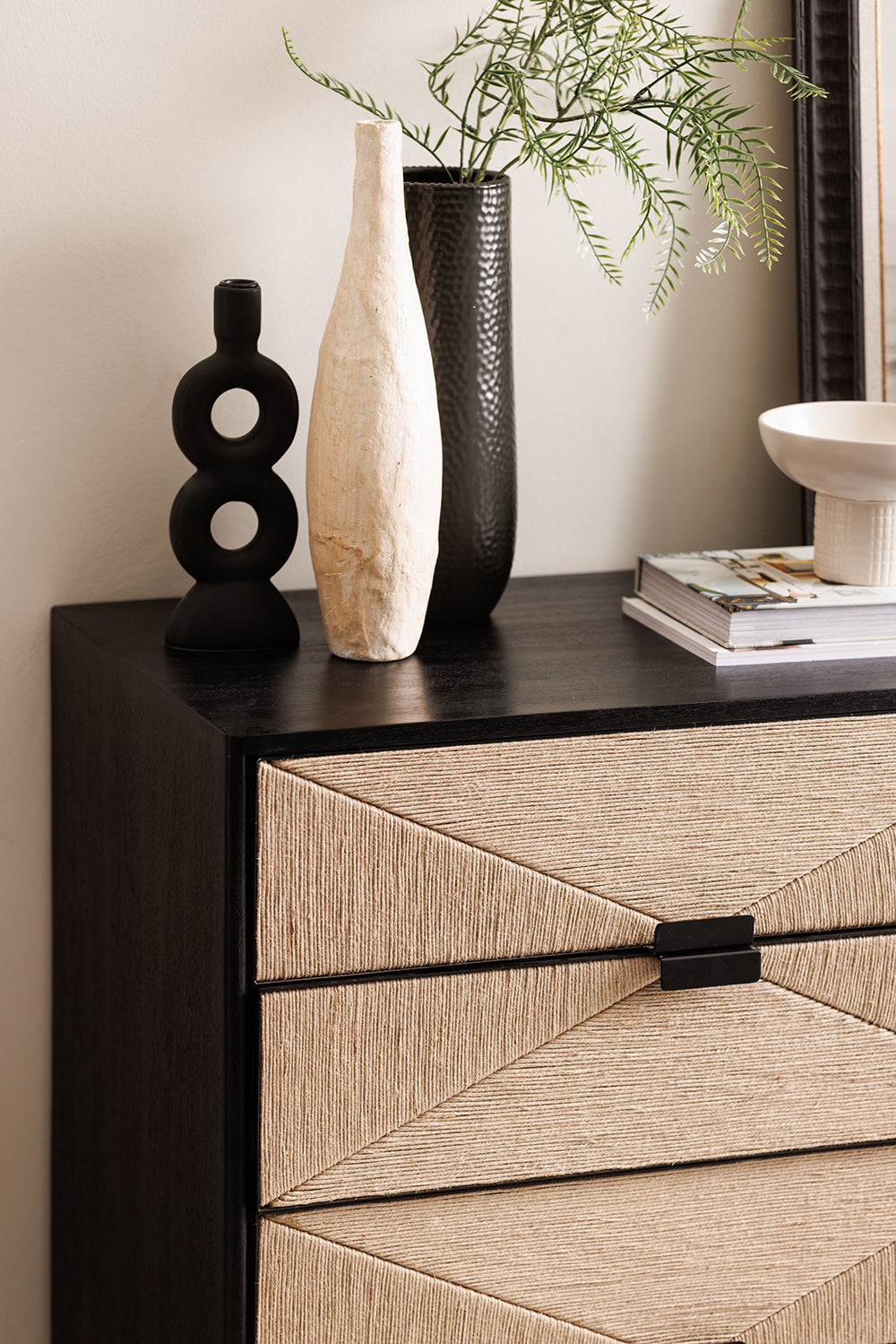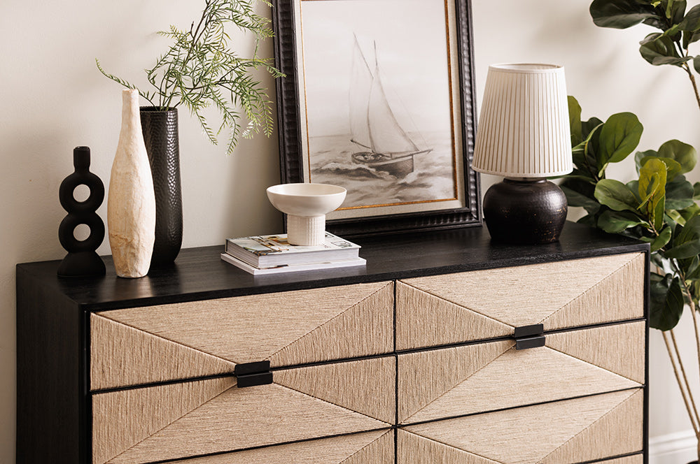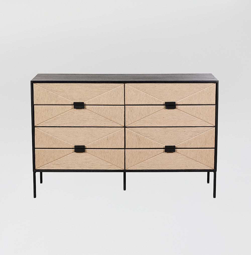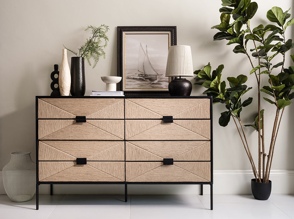 The Rattania 8 Drawer Wide Chest is a statement of sophistication. Each drawer offers ample storage, gliding open with ease to reveal space for all your sartorial selections. The wide top surface is perfect for displaying photos, jewelry boxes, or a vase of fresh flowers, making it a functional yet decorative centerpiece for your bedroom.