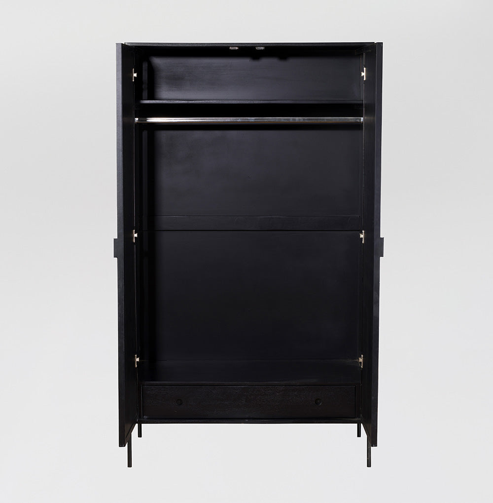 Step into a realm of elegance with the Rattania Double Wardrobe. Behind its dual doors lies a spacious haven for your garments. The wardrobe is fitted with a hanging rail and a shelf, providing a neat organization for everything from suits to dresses. The oak finish offers a warm, inviting look, while the sleek handles add a modern touch.