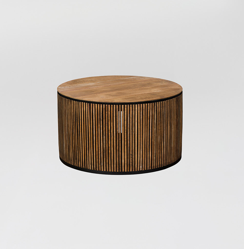 Center your living space with the Serenity Reclaimed Wood Coffee Table. Its round silhouette and contrasting textures fuse to create a modern yet earthy feel. The rhythmic pattern of the wood grain atop a clean metal base makes this table a tranquil oasis in your daily hustle. Perfect for gatherings or quiet moments, this coffee table stands as a testament to sustainable luxury and chic design.