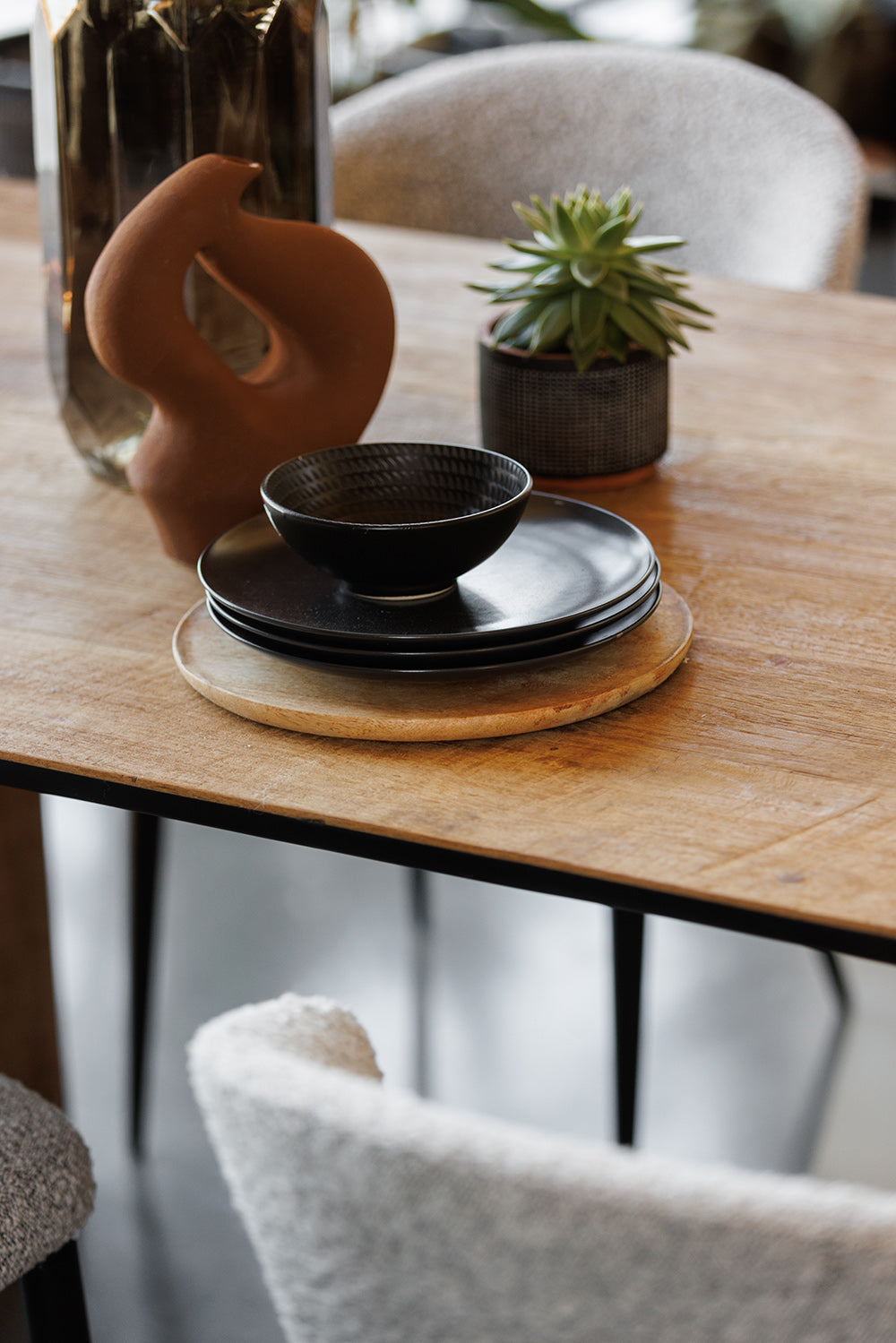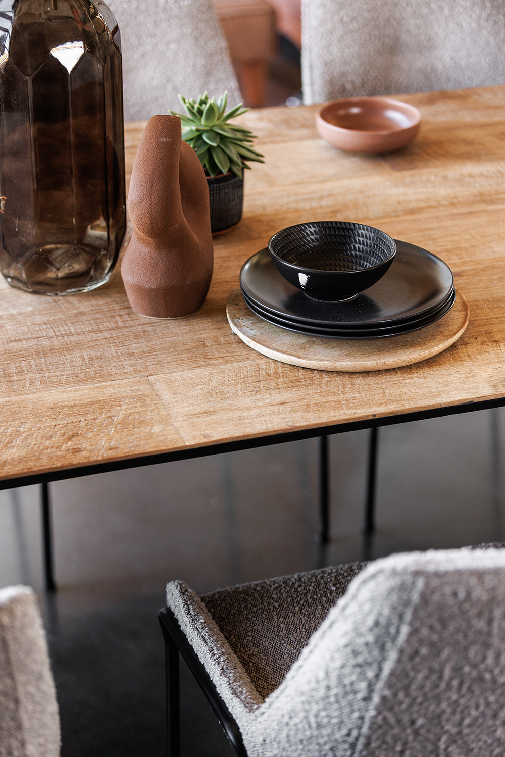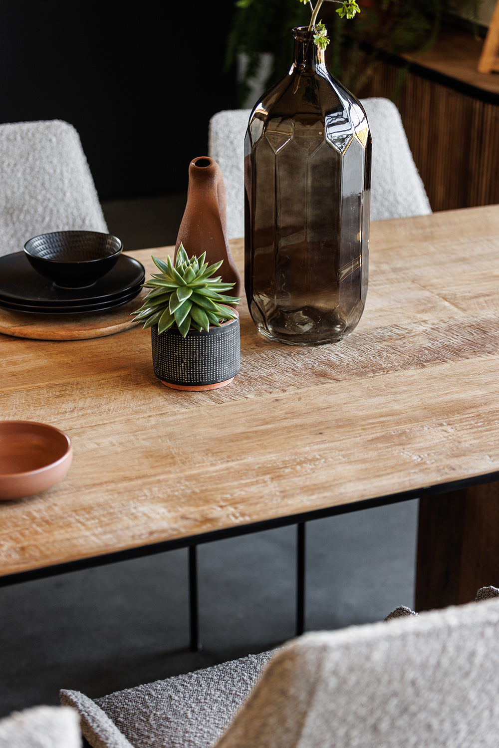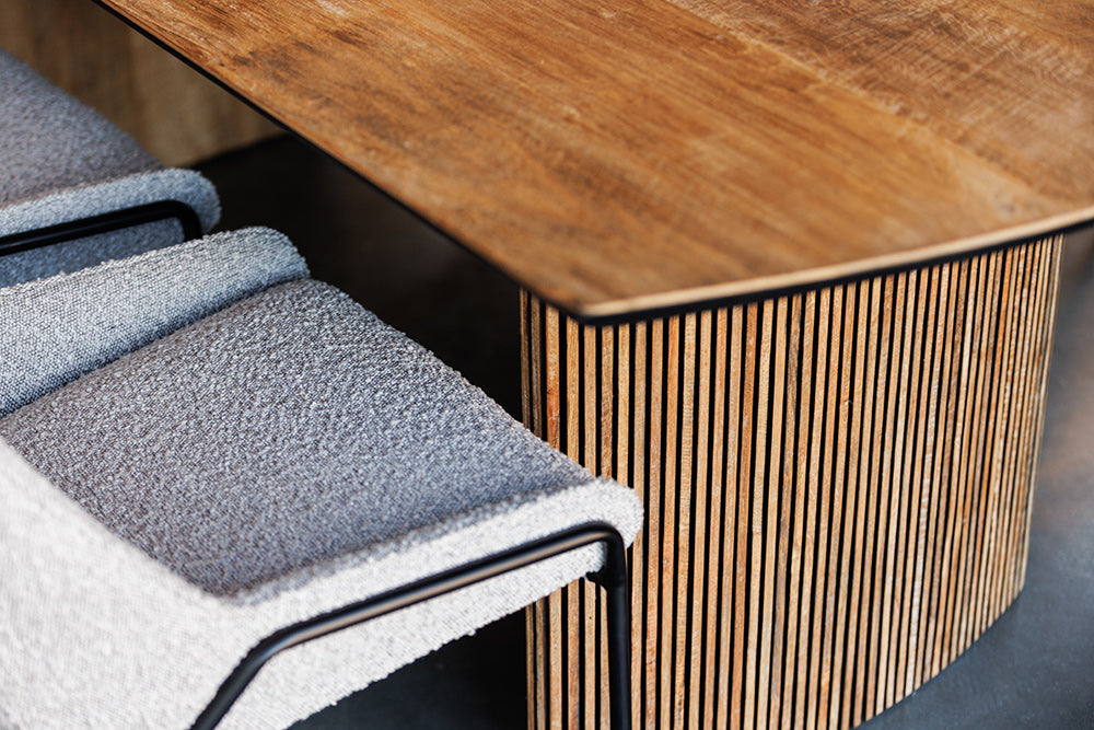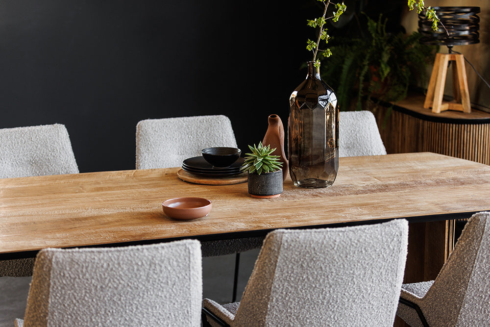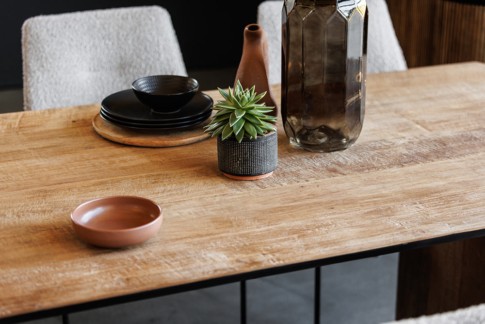 The Serenity Reclaimed Wood Dining Table is where stories are shared and memories made. Its robust form, crafted from reclaimed wood set upon a distinctive metal base, provides a generous surface for feasts and conversations. The table’s design embodies a calm strength, ensuring it becomes the heart of family gatherings and sophisticated entertaining. It’s not just a dining table—it’s where the serenity of shared meals brings people together.