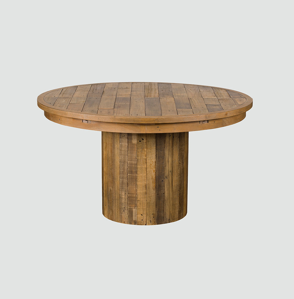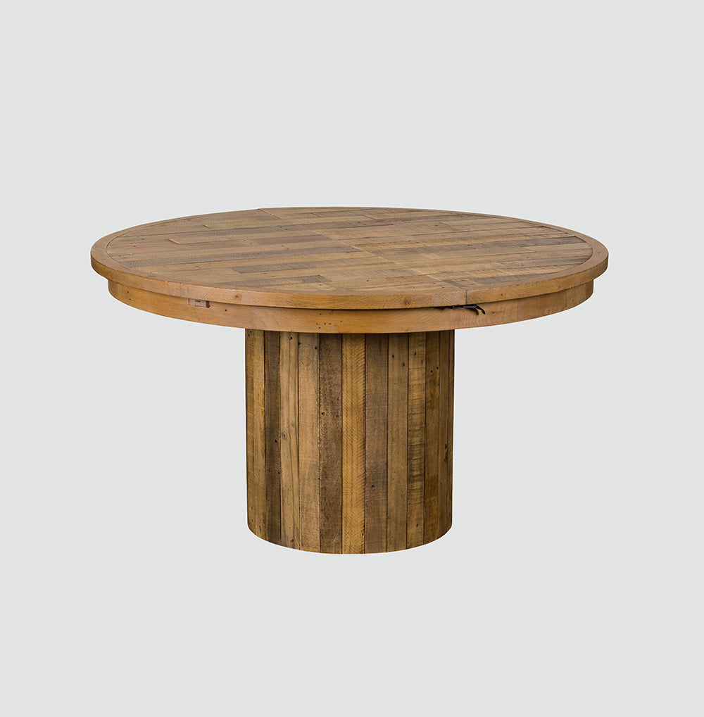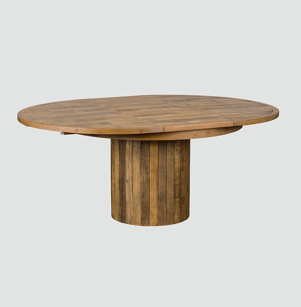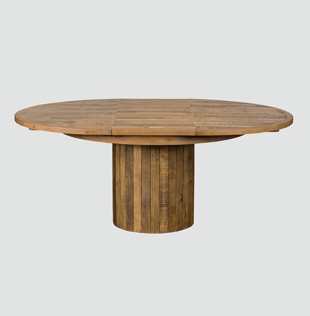 This Skyline Extending Round Dining Table offers versatility and elegance. Its circular design is perfect for intimate meals, and when extended, it comfortably accommodates additional guests. The reclaimed wood top and sturdy base provide a durable, stylish surface for any occasion.