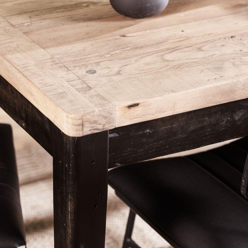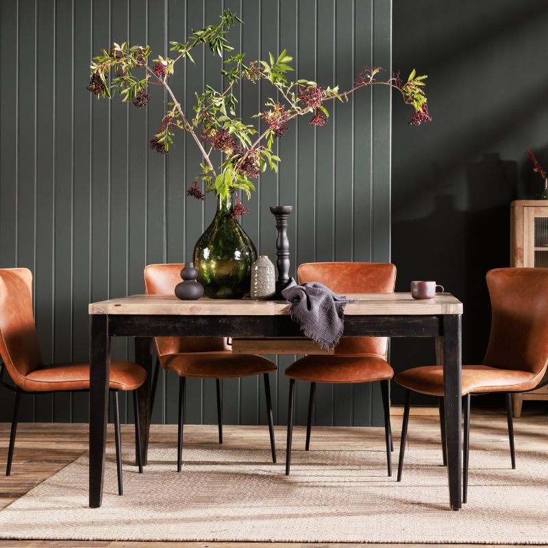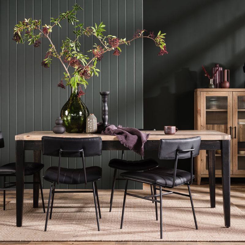 Bring a contemporary rustic mood to your dining space with this stylish reclaimed soho dining table with distressed dark stained legs. The Soho Extending Dining Table is a wonderful mix of old and new. By marrying a character-rich reclaimed wood top with simple modern lines and contrasting tones, this wooden extendable dining table is a rustic classic that will never lose its style. Available in two sizes with the extension handily concealed within the table top and operated by a simple butterfly mechanism, this soho dining table is perfect for both small and spacious dining spaces. Pair with other pieces of reclaimed wood furniture from the Soho collection for a charming modern rustic scheme.
