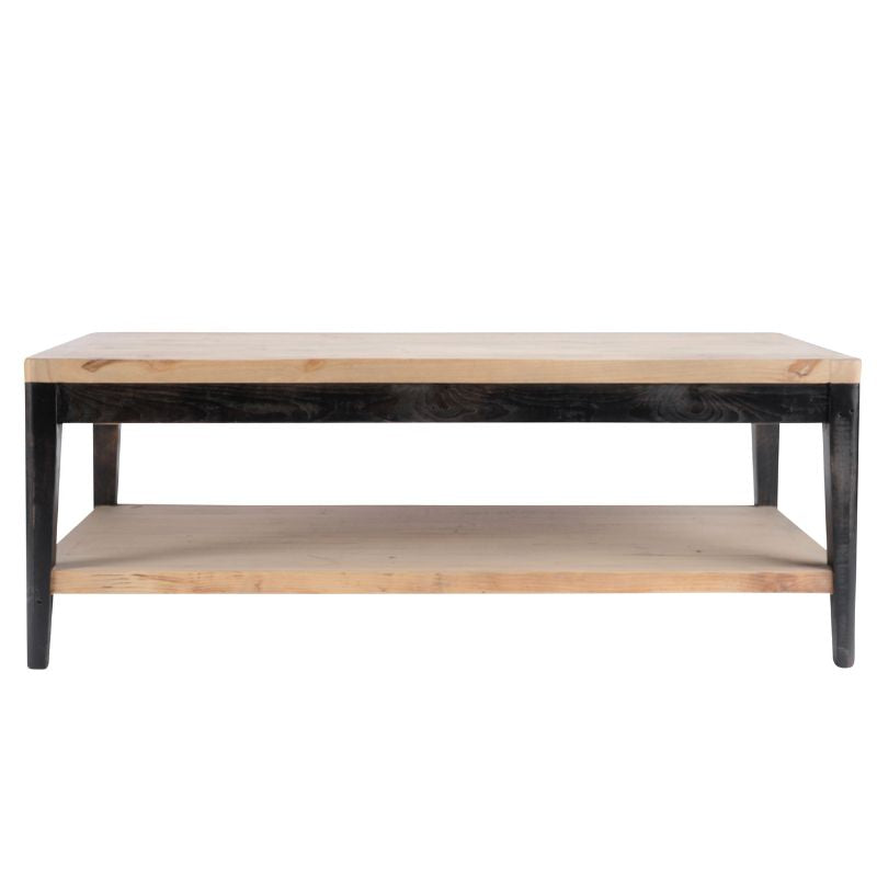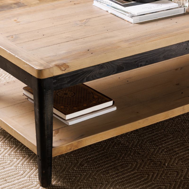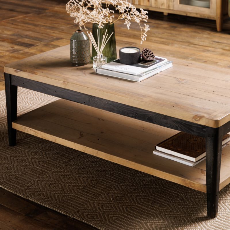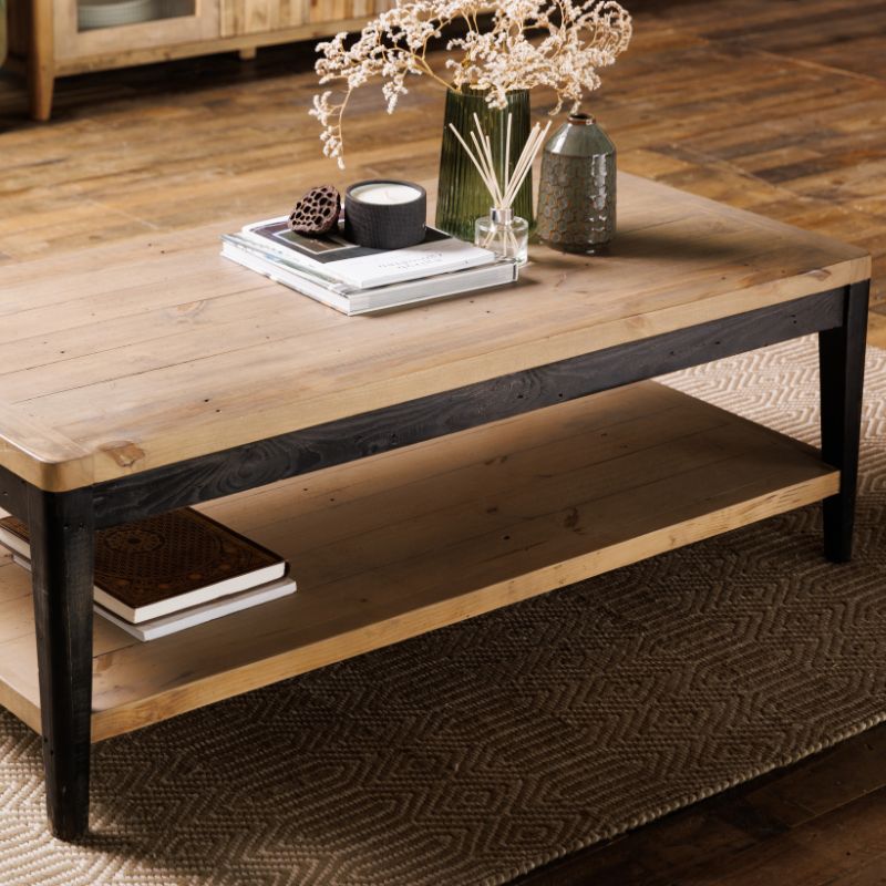 This stylish and timeless solid wood soho coffee table crafted in 100% reclaimed wood is a classic example of how rustic furniture can blend seamlessly in contemporary homes. The clean lines and distressed dark-painted wooden legs of the Soho reclaimed wood coffee table contrast with the textured repurposed wood that wears its natural imperfections, marks and scars with pride. Featuring a handy bottom shelf this rustic wood coffee table is an essential piece of living room furniture. Bring to life with your choice of a stylish vase, candles and modern coffee table books and let this contemporary classic take centre stage in your living room.