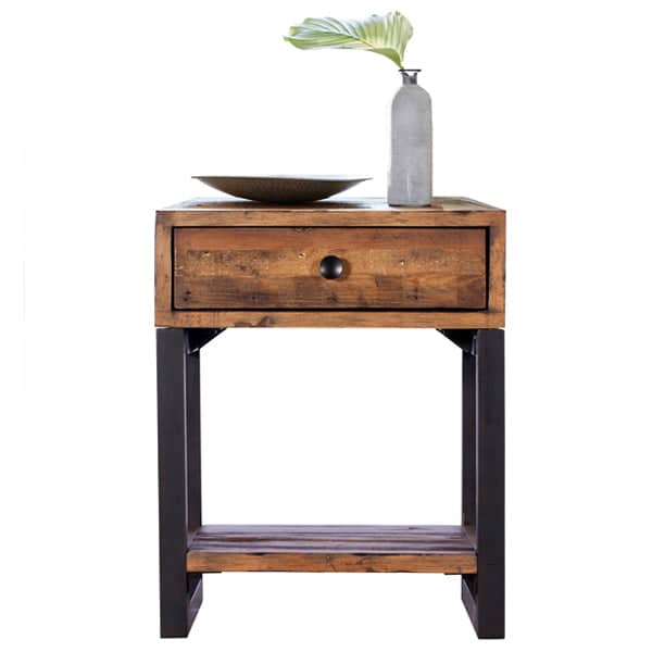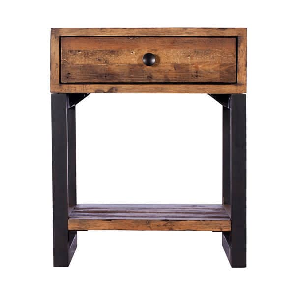 There is no denying that a rustic side table would make a beautiful addition to modern living room furniture or rustic bedroom furniture. The Standford Industrial Side Table has been handcrafted using 100% reclaimed wood and features stunning, distressed steel nixon legs which really contrasts with the natural character and charm of the wood for a truly unique finish. Featuring an open shelf and a small draw at the top of the bedside table, this reclaimed wood side table adds both style and practicality to modern homes.