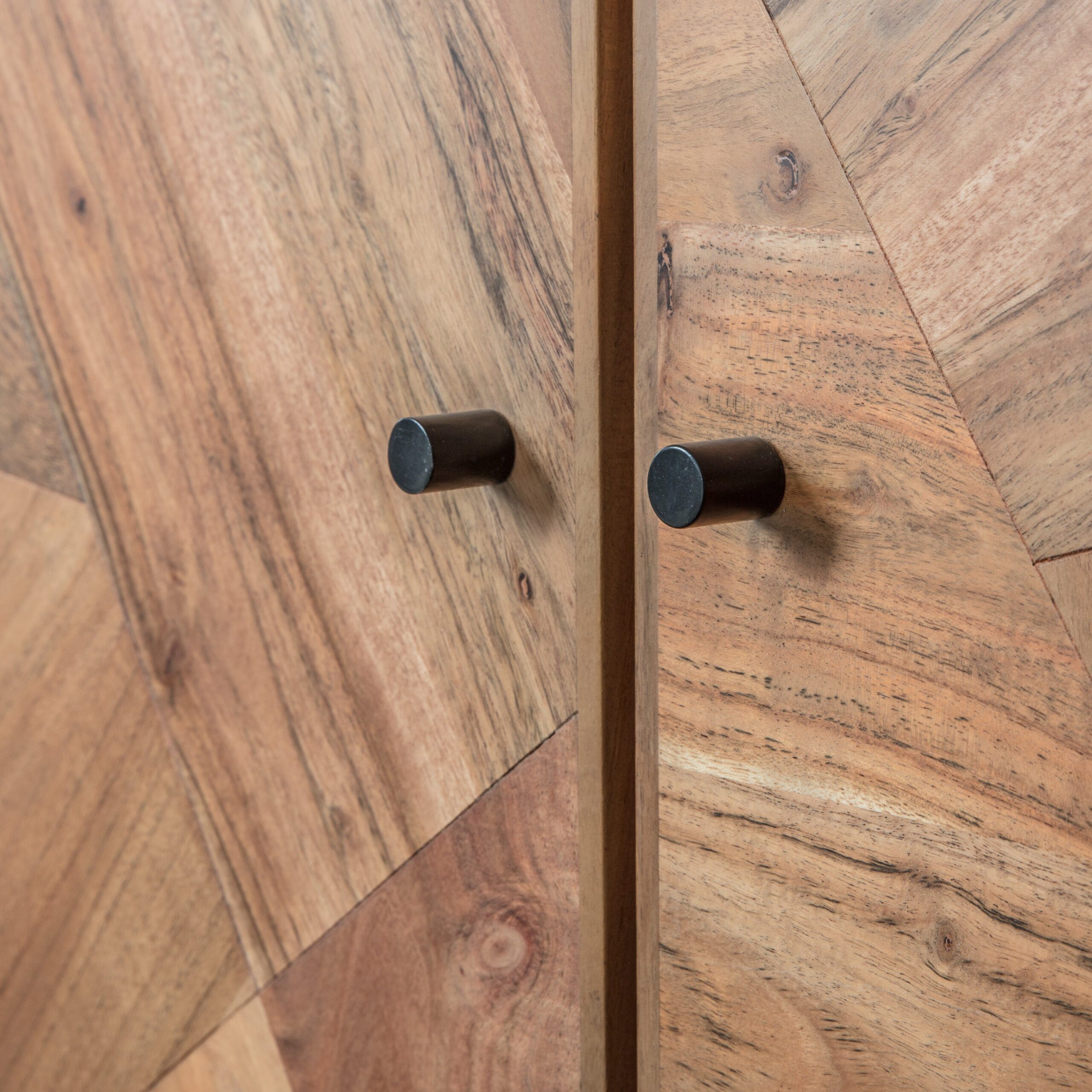 Functionality meets aesthetic in our new Oklahoma furniture. Inspired by the increasingly popular Japandi style with a focus on natural textures, this collection features a unique geometric design in a multi tonal finish with black metal legs and simple round handles, bringing balance to each piece of furniture across the range. This stylish sideboard looks stunning as a stand alone piece or paired with the Oklahoma drinks cabinet and Media Unit.
