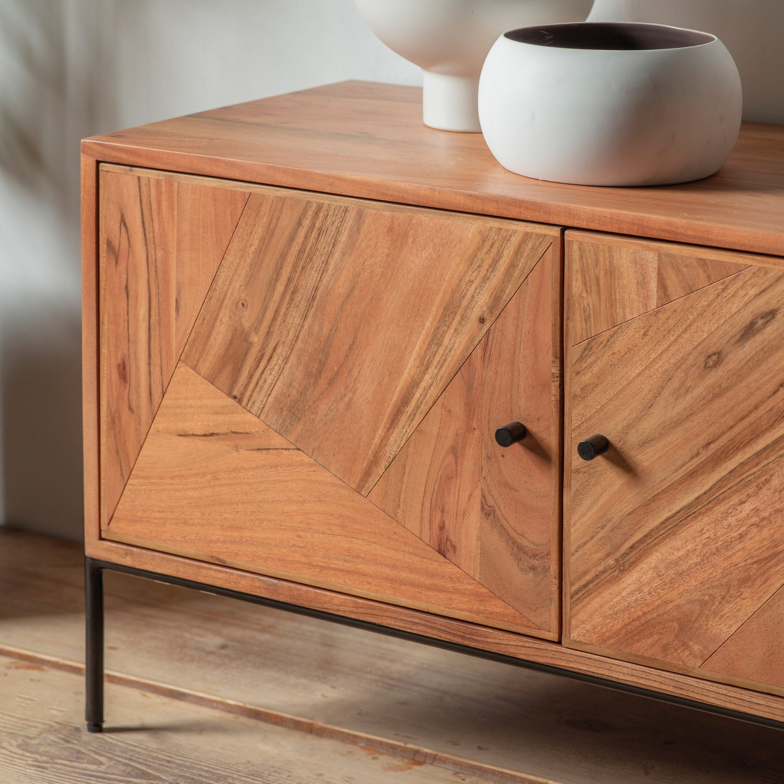 Functionality meets aesthetic in our new Oklahoma furniture. Inspired by the increasingly popular Japandi style with a focus on natural textures, this collection features a unique geometric design in a multi tonal finish with black metal legs and simple round handles, bringing balance to each piece of furniture across the range. This stylish Media Unit looks stunning as a stand alone piece or paired with the Oklahoma Sideboard and Drinks Cabinet.