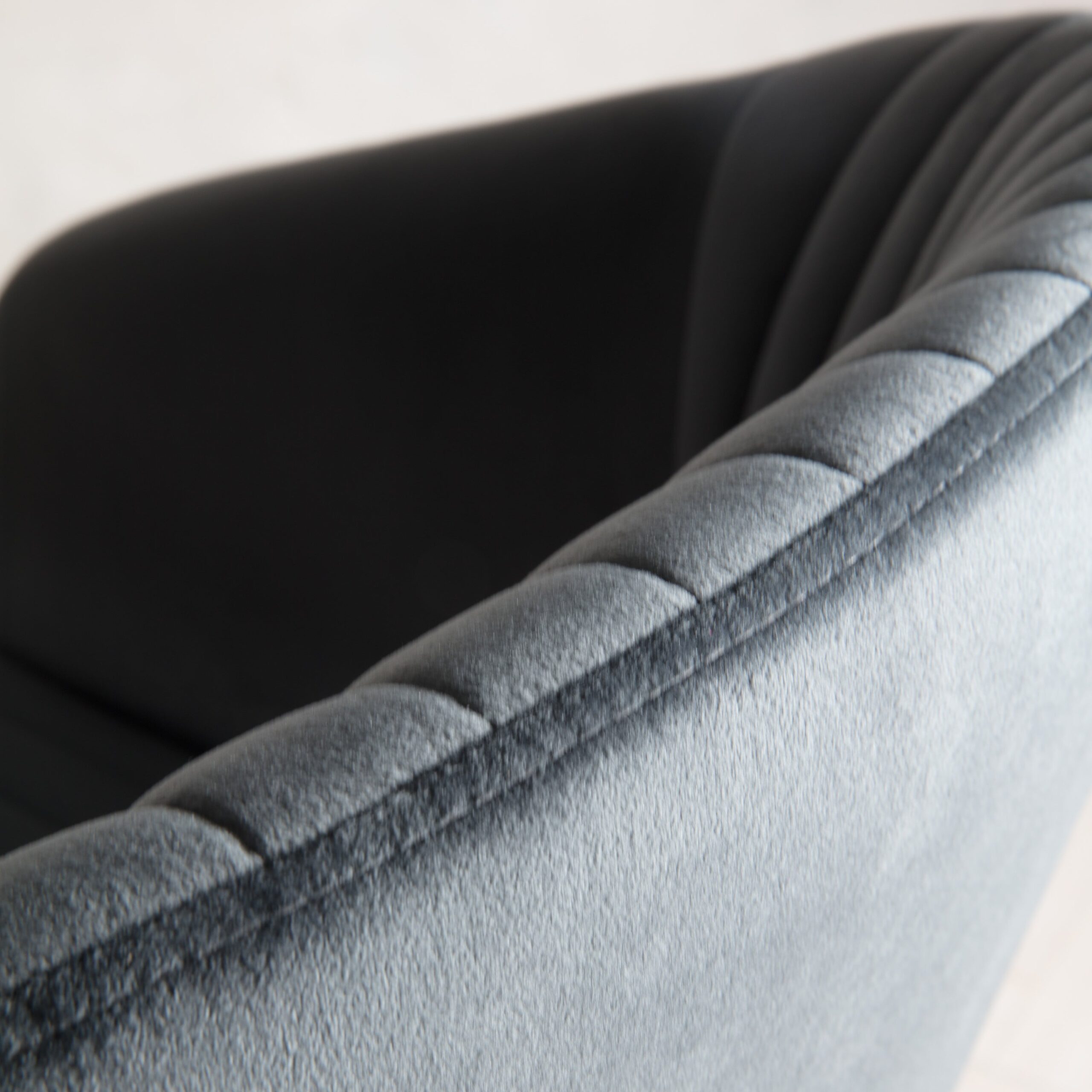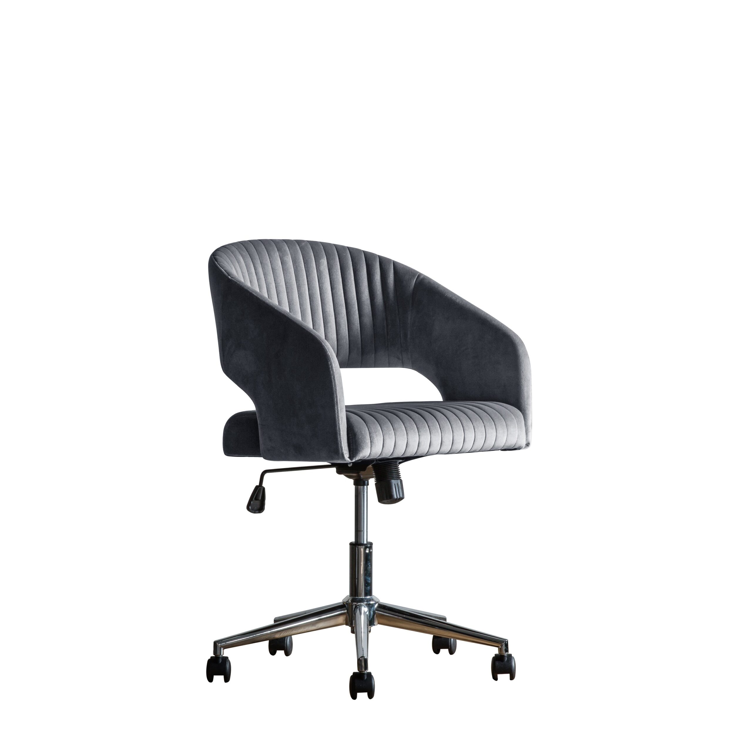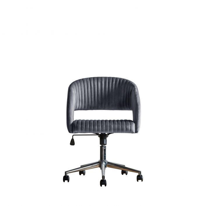 Experience the perfect blend of luxury and functionality with the Velvique Swivel Office Chair. Designed for the modern home office, this chair boasts rich charcoal velvet upholstery complemented by a lustrous silver base. Detailed stitching on the padded back and seat accentuates its refined look. With features such as tilt adjustment, gas lift height customisation, and smooth-rolling castors, the Velvique ensures ergonomic comfort while enhancing your workspace’s aesthetics. Looking for more colour options? Explore the Velvique range, now available in four additional shades.