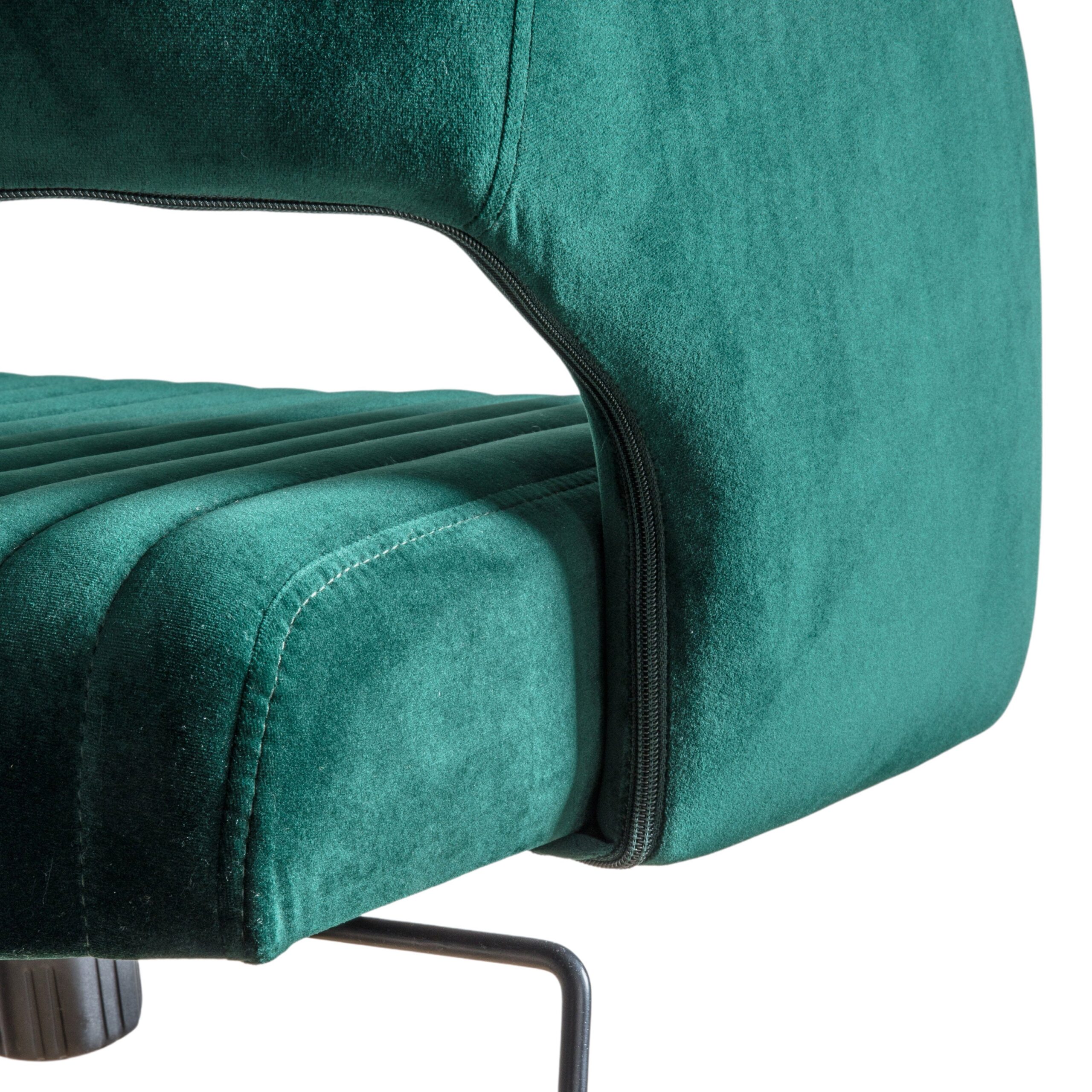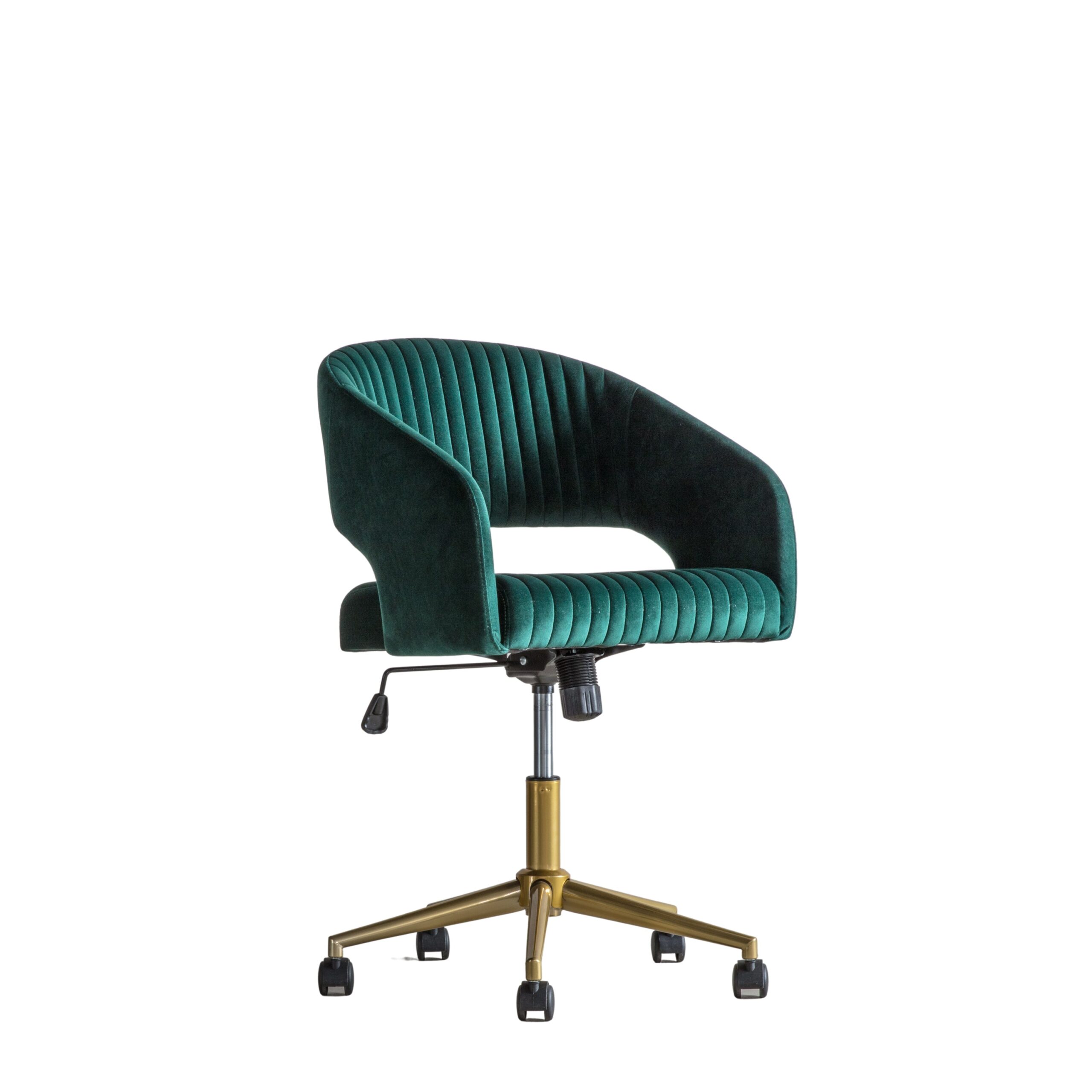 Experience the perfect blend of luxury and functionality with the Velvique Swivel Office Chair. Designed for the modern home office, this chair boasts rich green velvet upholstery complemented by a lustrous gold base. Detailed stitching on the padded back and seat accentuates its refined look. With features such as tilt adjustment, gas lift height customisation, and smooth-rolling castors, the Velvique ensures ergonomic comfort while enhancing your workspace’s aesthetics. Looking for more colour options? Explore the Velvique range, now available in four additional shades.
