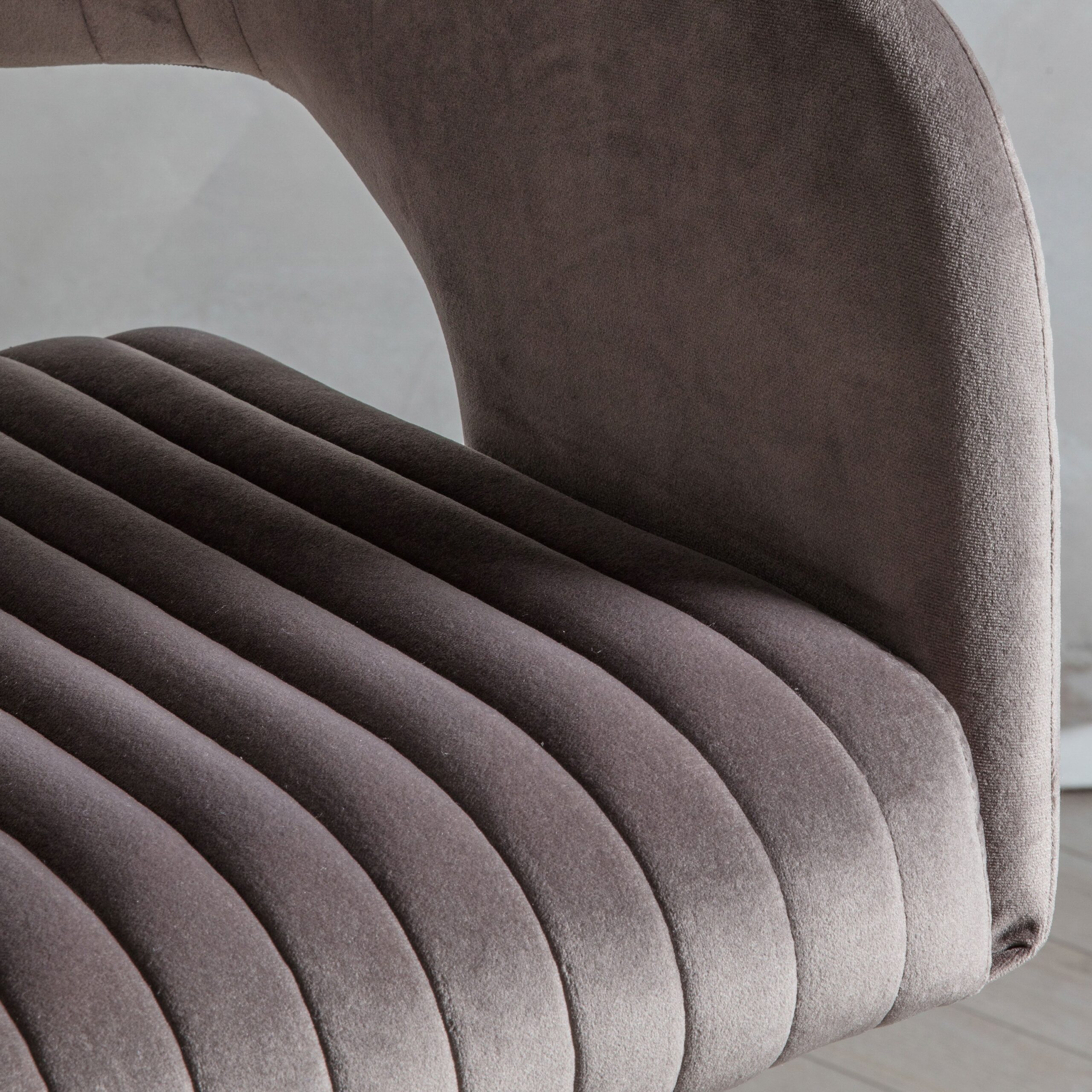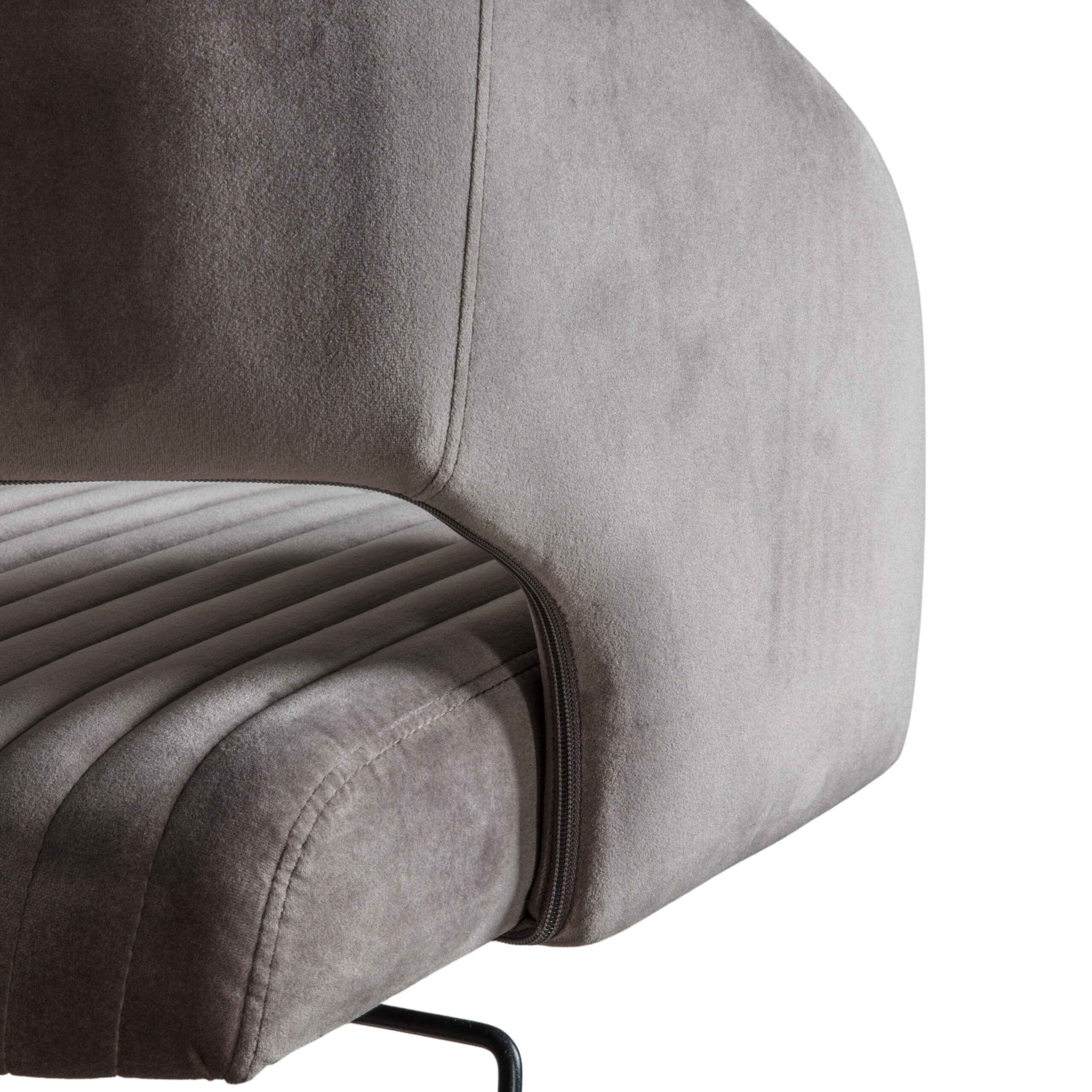 Experience the perfect blend of luxury and functionality with the Velvique Swivel Office Chair. Designed for the modern home office, this chair boasts rich grey velvet upholstery complemented by a lustrous gold base. Detailed stitching on the padded back and seat accentuates its refined look. With features such as tilt adjustment, gas lift height customisation, and smooth-rolling castors, the Velvique ensures ergonomic comfort while enhancing your workspace’s aesthetics. Looking for more colour options? Explore the Velvique range, now available in four additional shades.