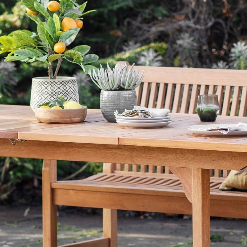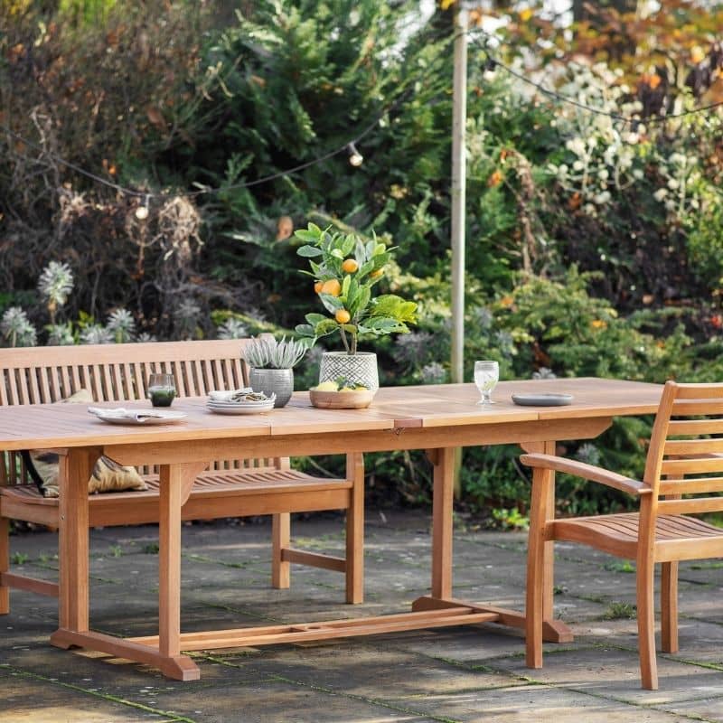 If you’re big on entertaining and timeless style this extendable outdoor wooden table is the perfect luxury garden furniture to bring your outdoor space to life. Crafted in sustainable eucalyptus wood that is naturally resistant to water and ideal for colder wetter climates, like ours, this garden dining table comfortably seats 6 and includes two butterfly extension leaves that can extend to seat up to 12 people, perfect for larger gatherings and occasions.